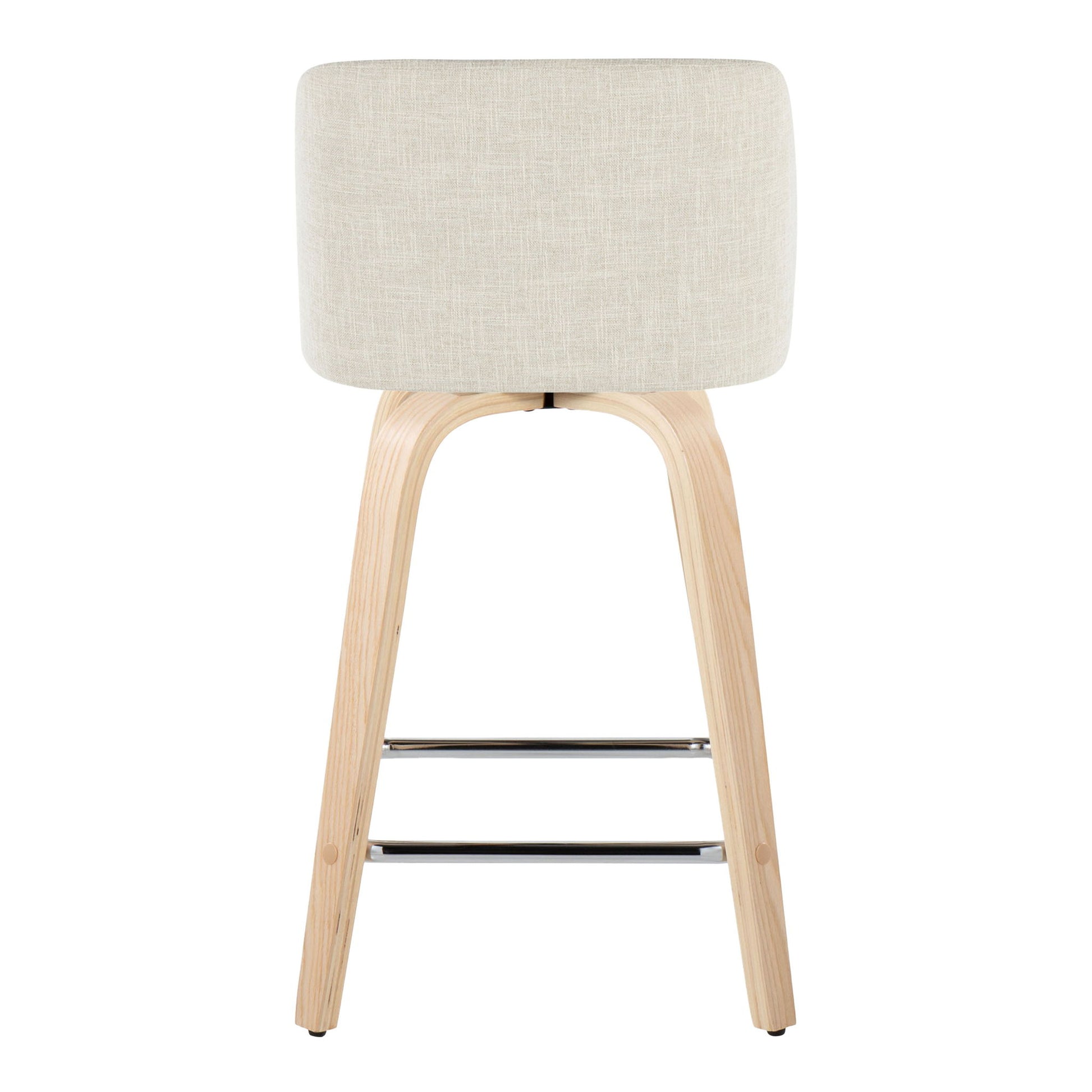 Toriano - Contemporary Fixed Height Counter Stool Swivel With Square Footrest (Set of 2) - Natural / Cream