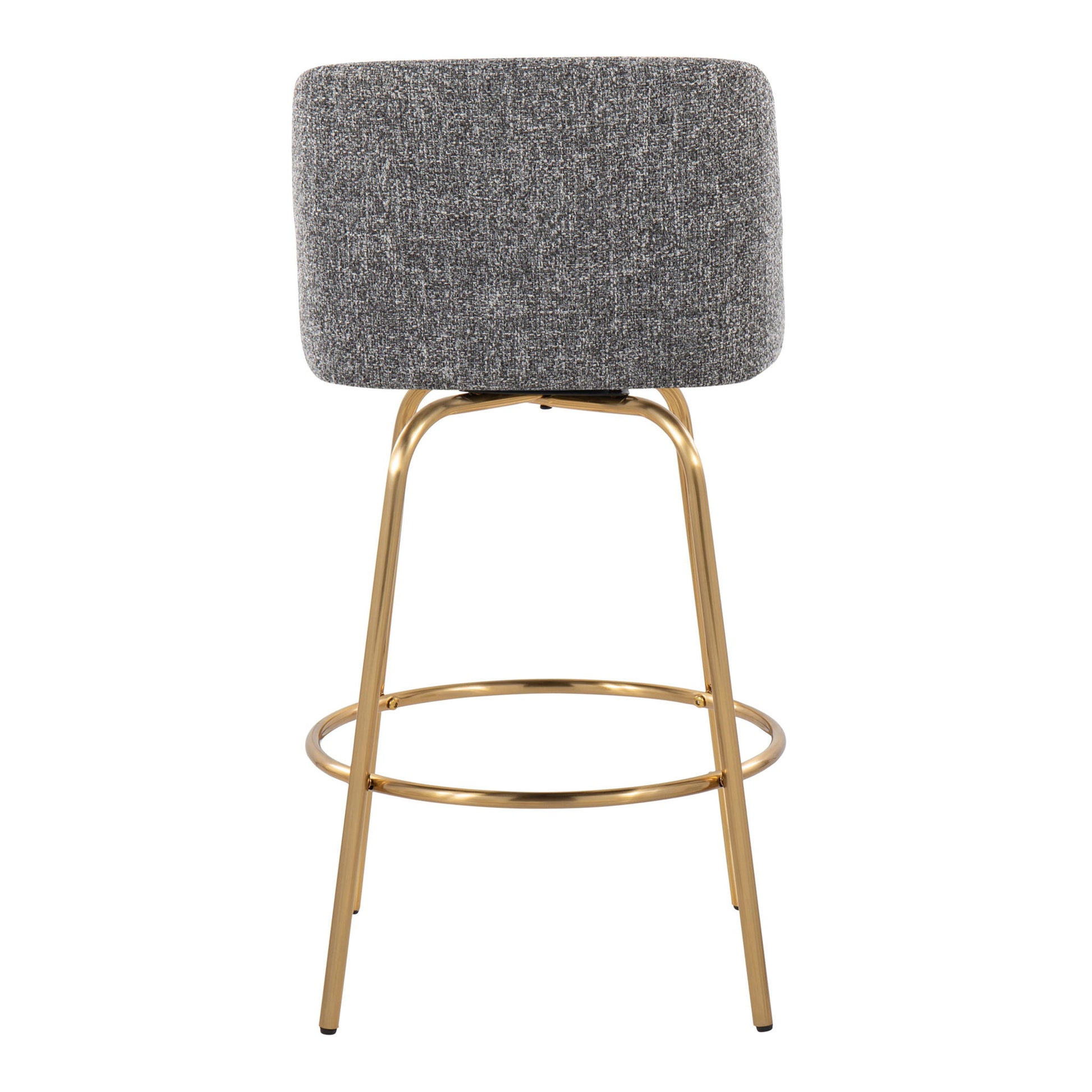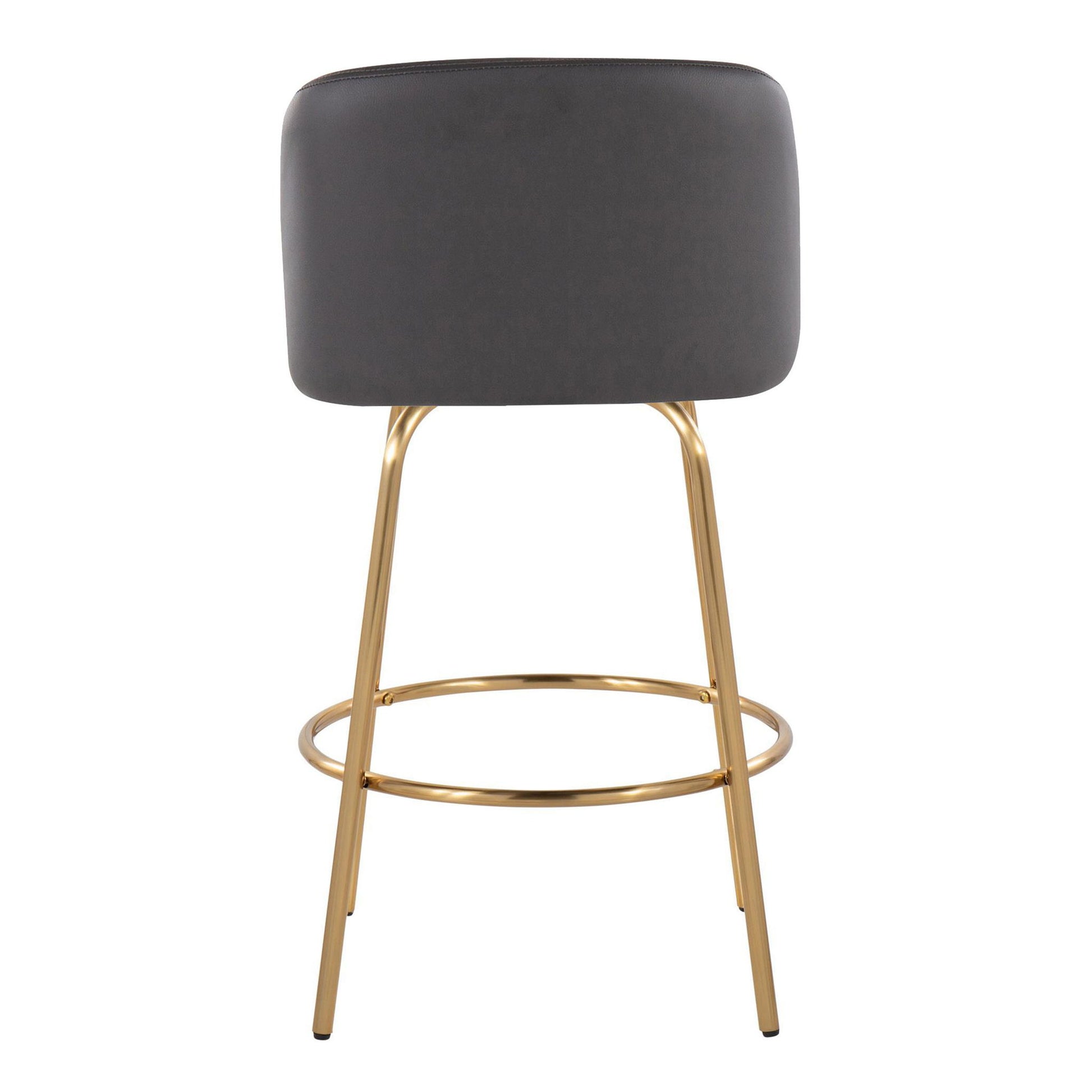 Toriano - Contemporary Fixed Height Counter Stool With Swivel And Round Footrest (Set of 2) - Gray / Gold