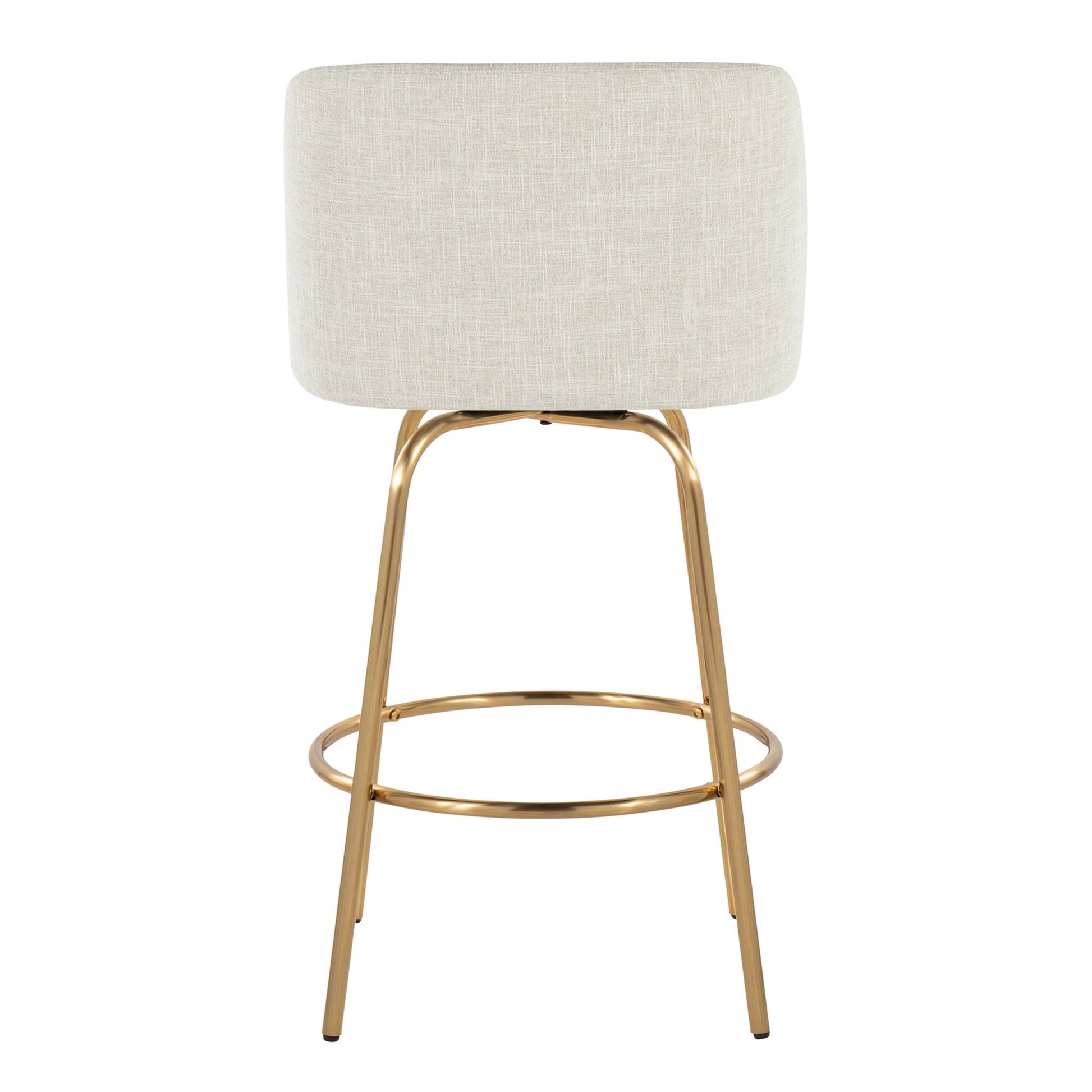 Toriano - Contemporary Fixed Height Counter Stool Swivel With Round Footrest (Set of 2) - Cream / Gold