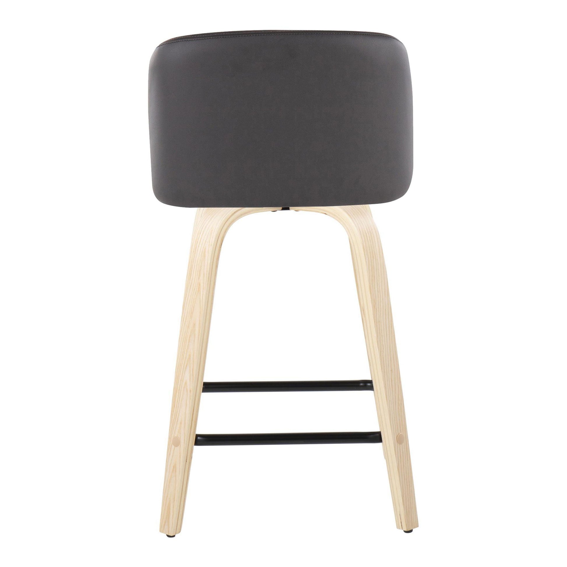 Toriano - Contemporary Fixed Height Counter Stool With Swivel, Square Footrest (Set of 2) - Gray / Black / Natural