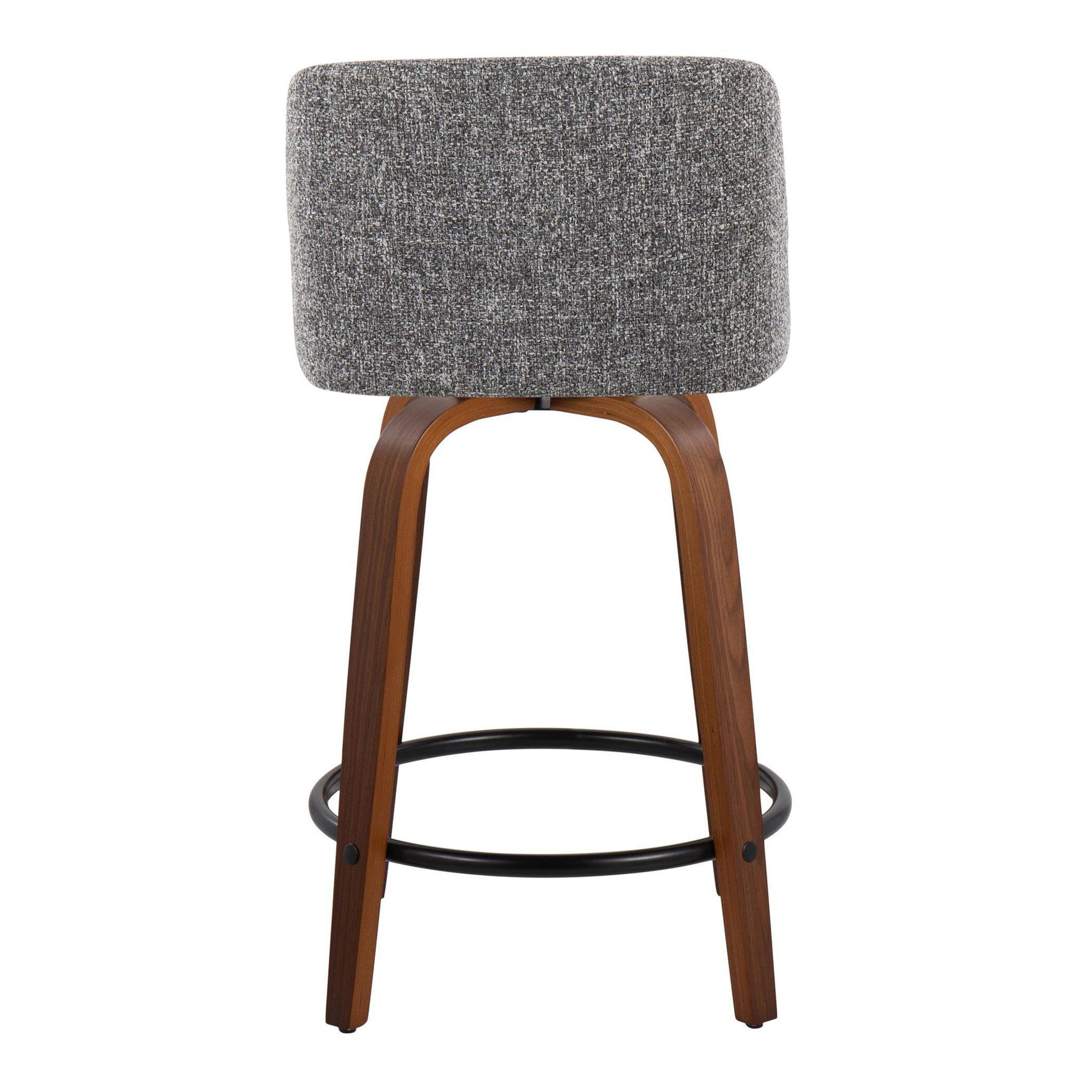 Toriano - Mid-Century Modern Fixed Height Counter Stool With Swivel And Round Footrest (Set of 2) - Walnut / Gray
