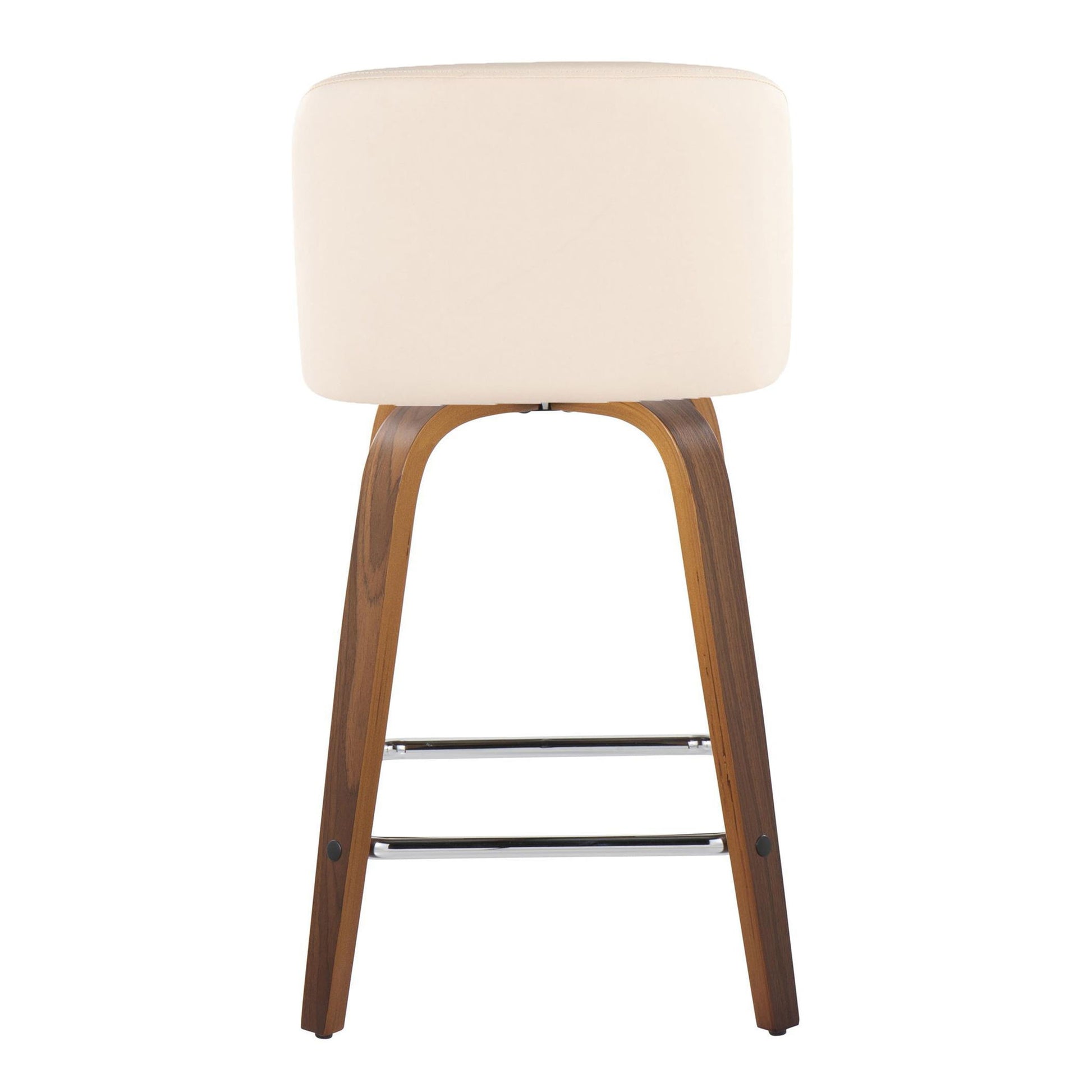 Toriano - Mid-Century Modern Fixed Height Counter Stool With Swivel & Square Footrest (Set of 2) - Walnut / Cream