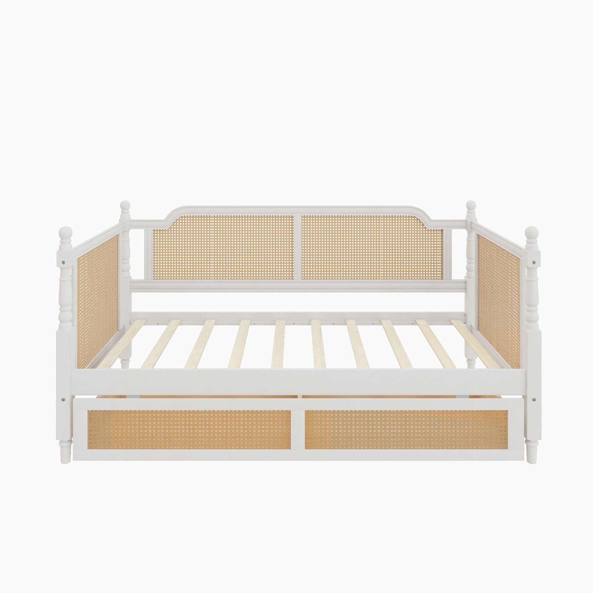 Traditional Style Rattan Twin Size Daybed With 2 Drawers For Limited Space, Guest Room, No Box Spring Needed - Antique White