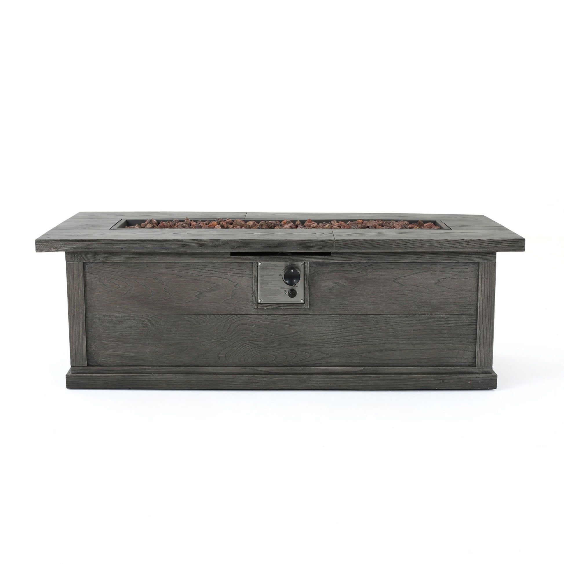 Transitional, Rectangular Outdoor Propane Fire Pit With 50, 000 Btu, Tank Cover Not Included - Brown Wood Pattern