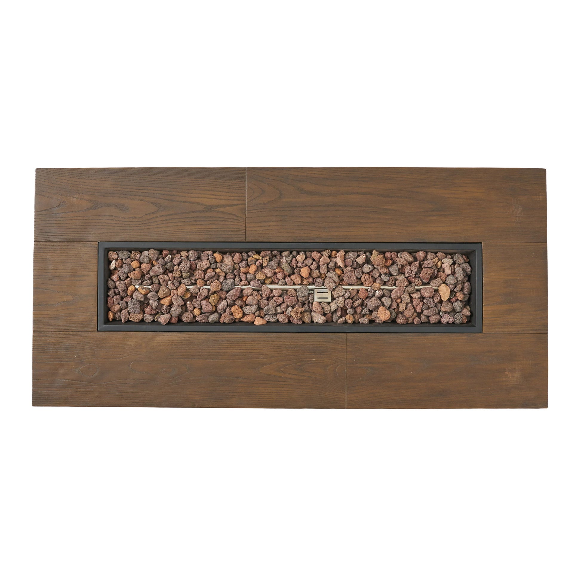 Transitional Rectangular Outdoor Propane Fire Pit With 50, 000 Btu, Tank Cover Not Included - Brown Wood Pattern