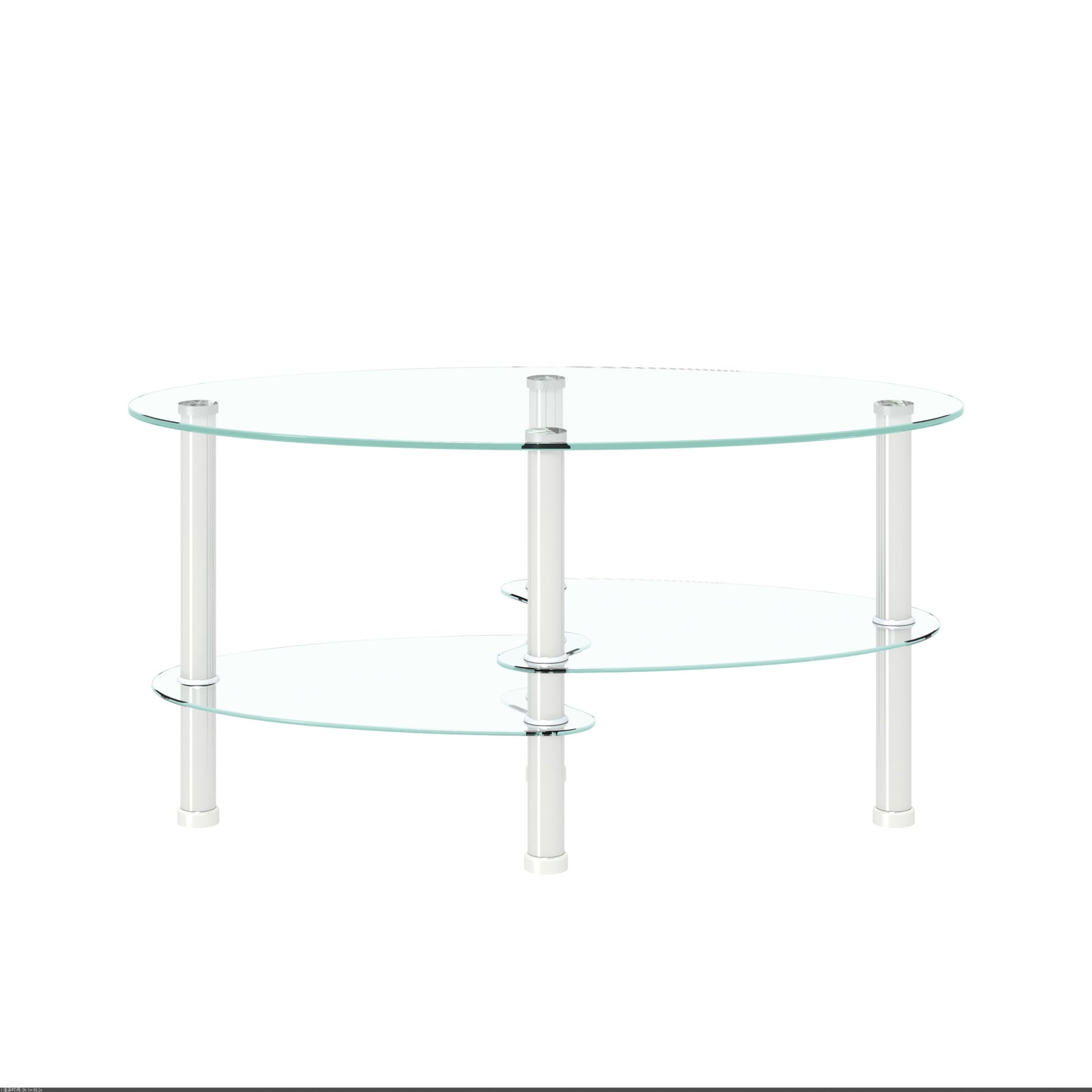 Transparent Oval Glass Coffee Table, Modern Table With Stainless Steel Leg, Tea Table 3-Layer Glass Table For Living Room - Transparent / White