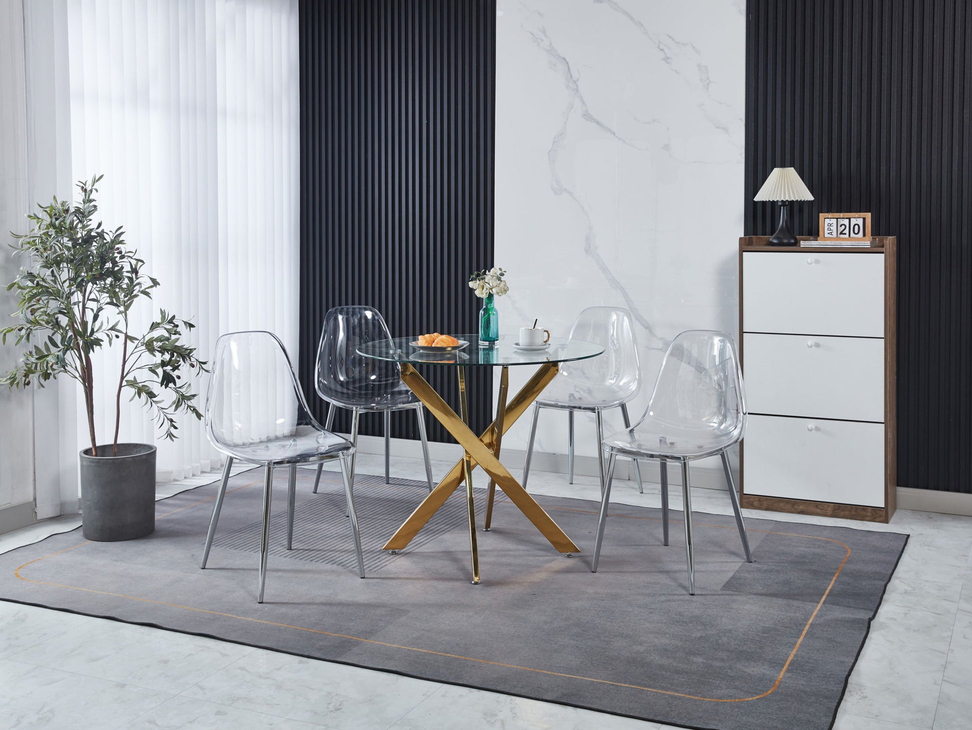 Dining Chair, Metal Leg, Plastic Seat (Set of 4) - Gold / Transparent