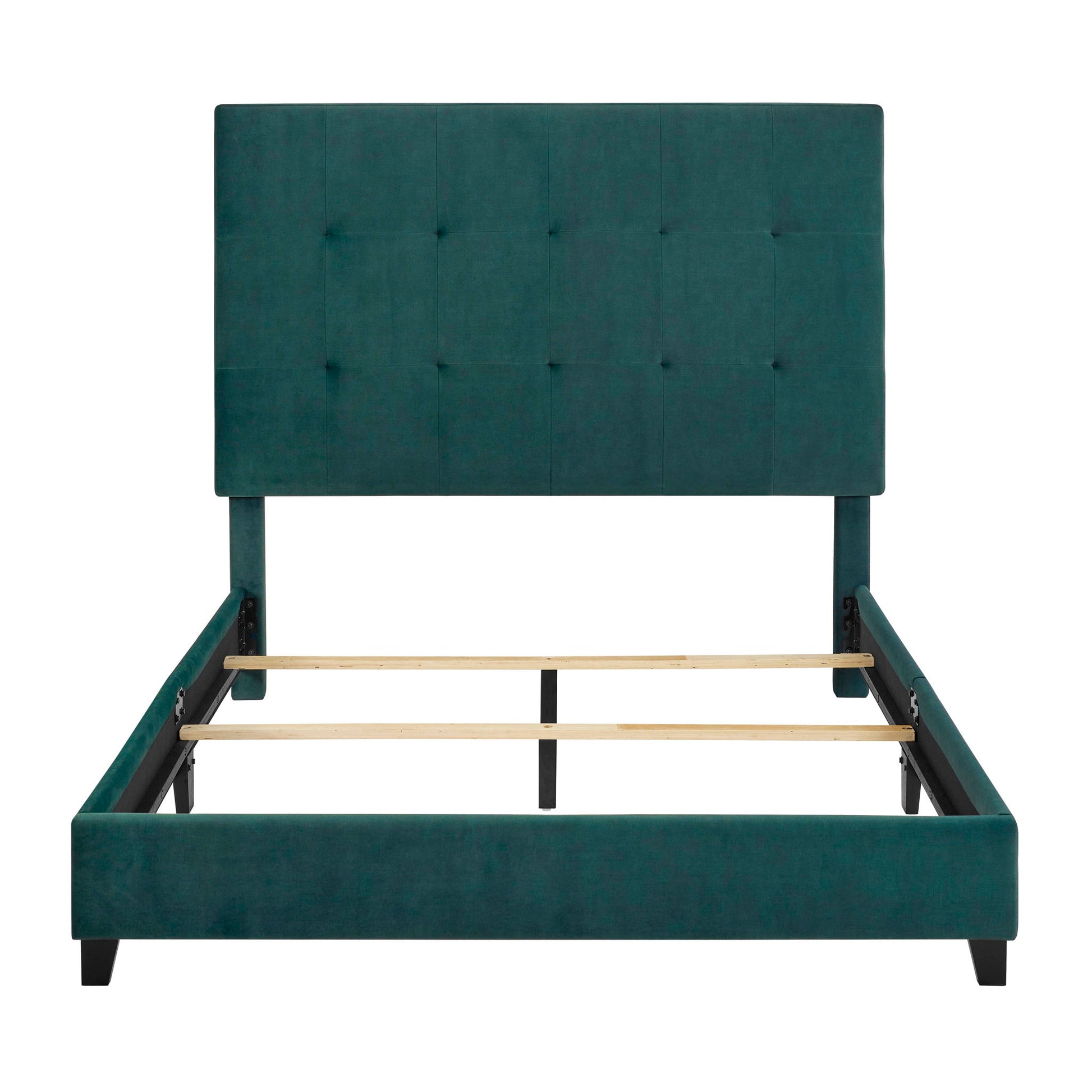 Queen Size Green Velvet Tufted Upholstered Platform Bed
