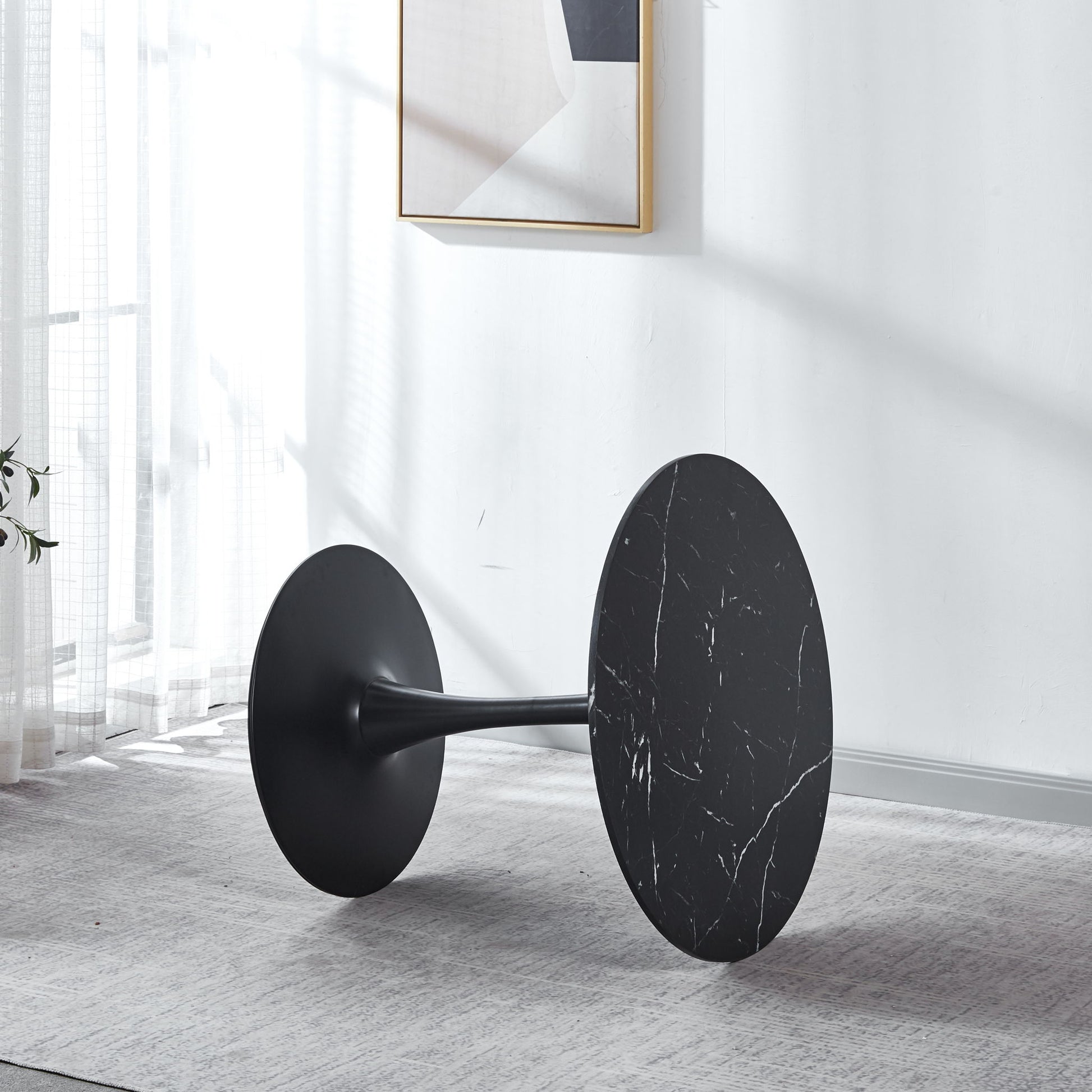 Tulip Special Dining Table, Black Marble Color Top, MDF Dining Table - Black