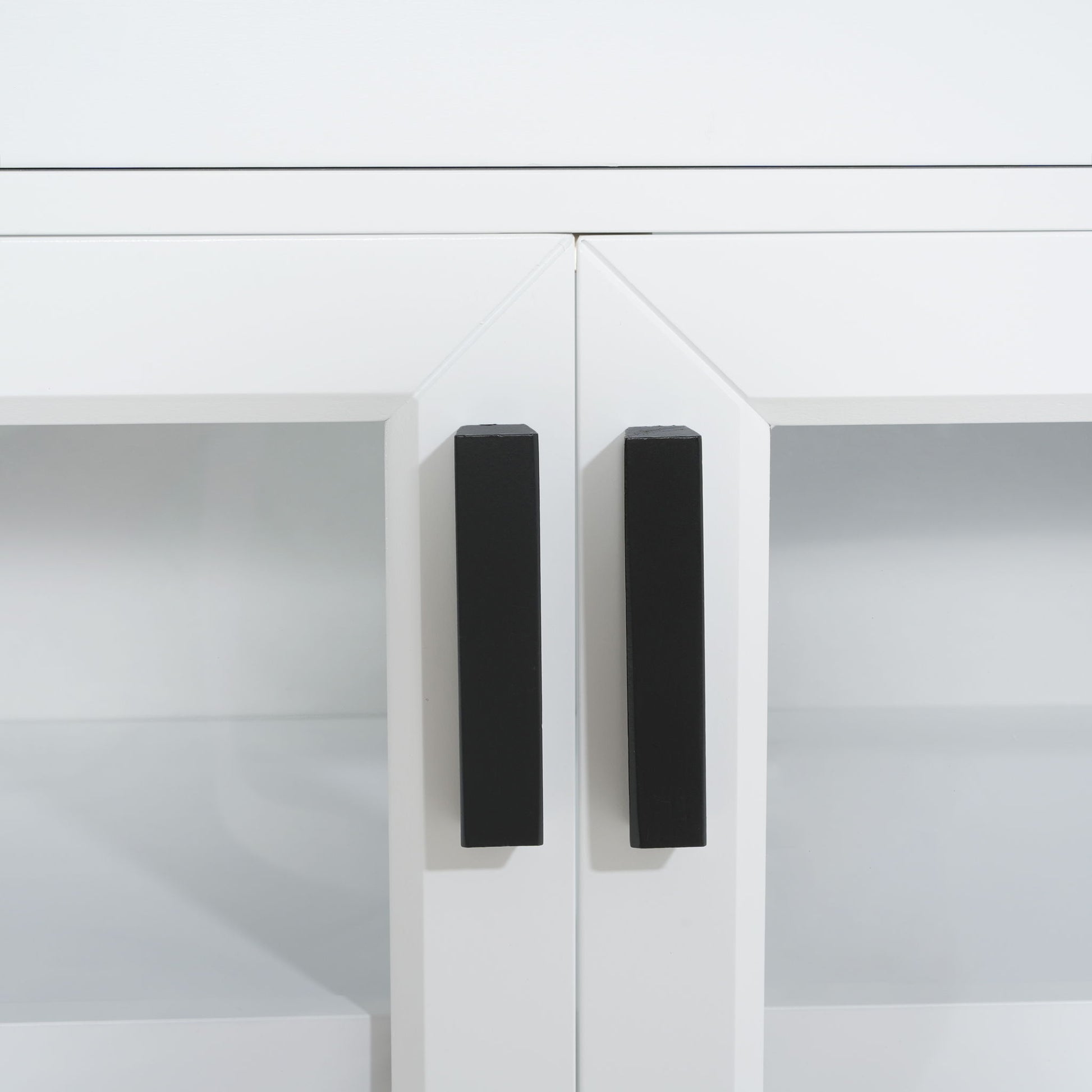 TV Console Stand, Glass Doors & Storage Drawers, Adjustable Shelves - White