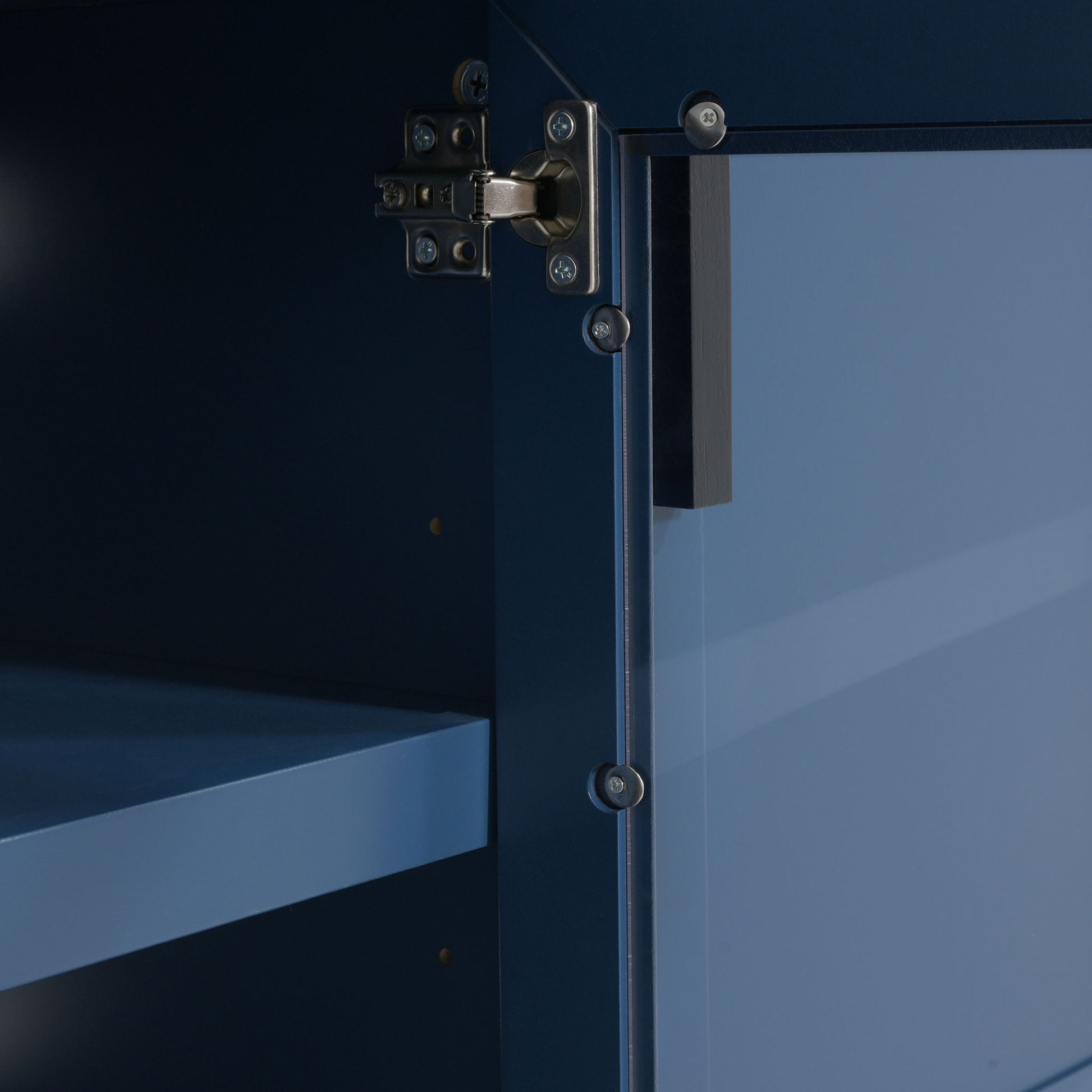 TV Console Stand, Glass Doors & Storage Drawers, Adjustable Shelves - Blue