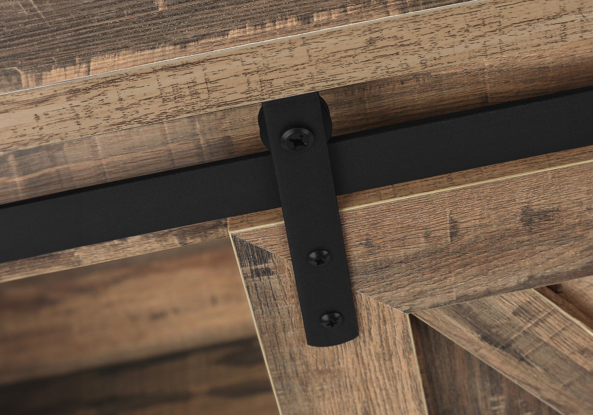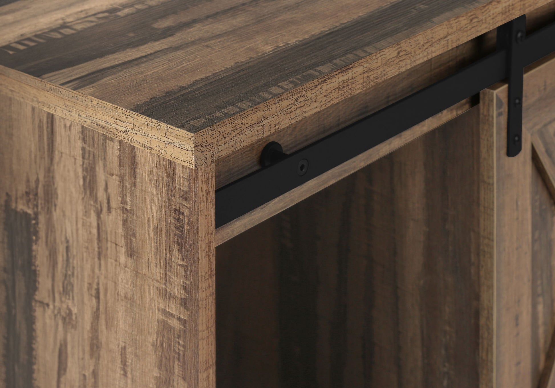 - Sliding Doors: Equipped with two barn-style sliding doors that glide along a metal track, providing easy access and a rustic charm. The doors include metal handles for a cohesive look.