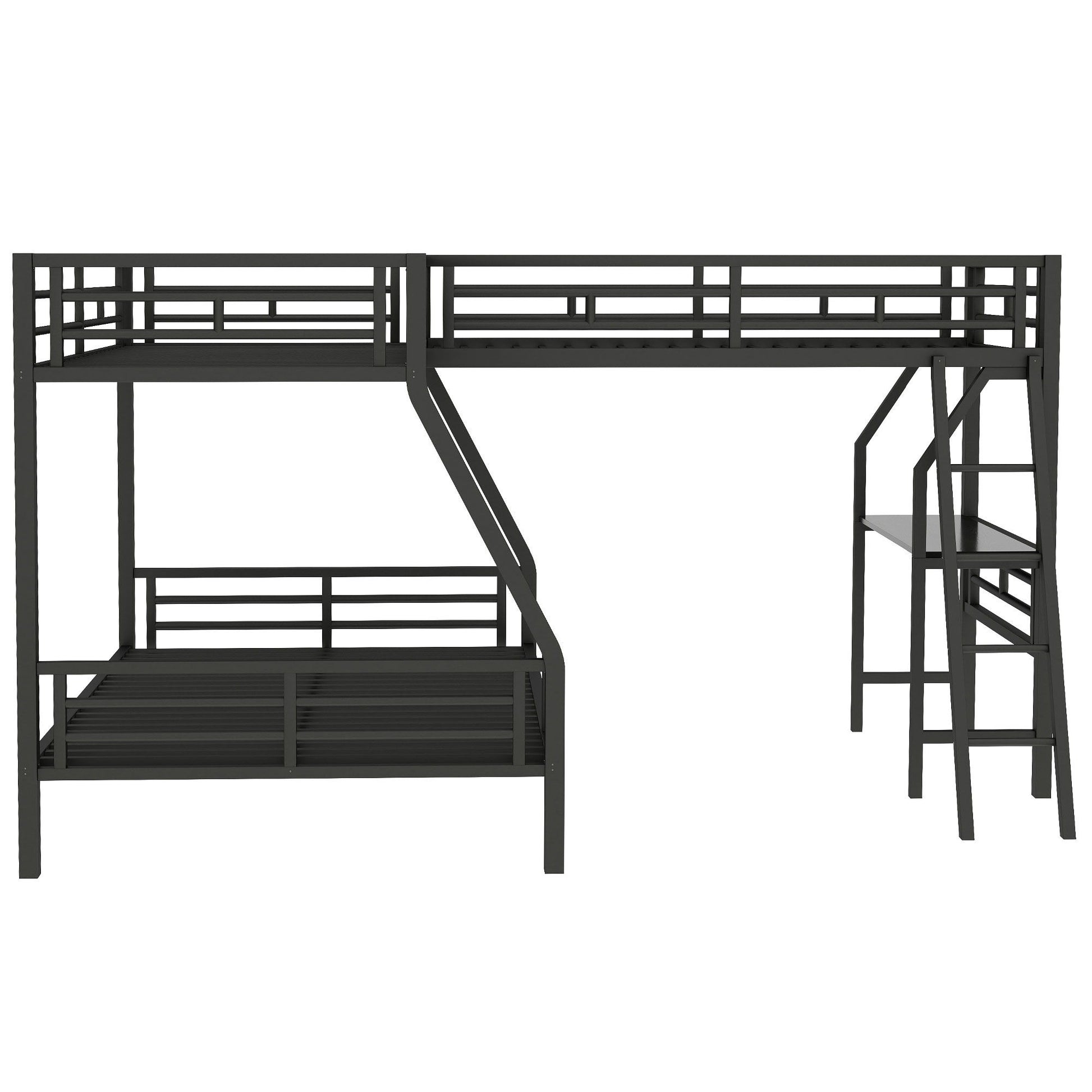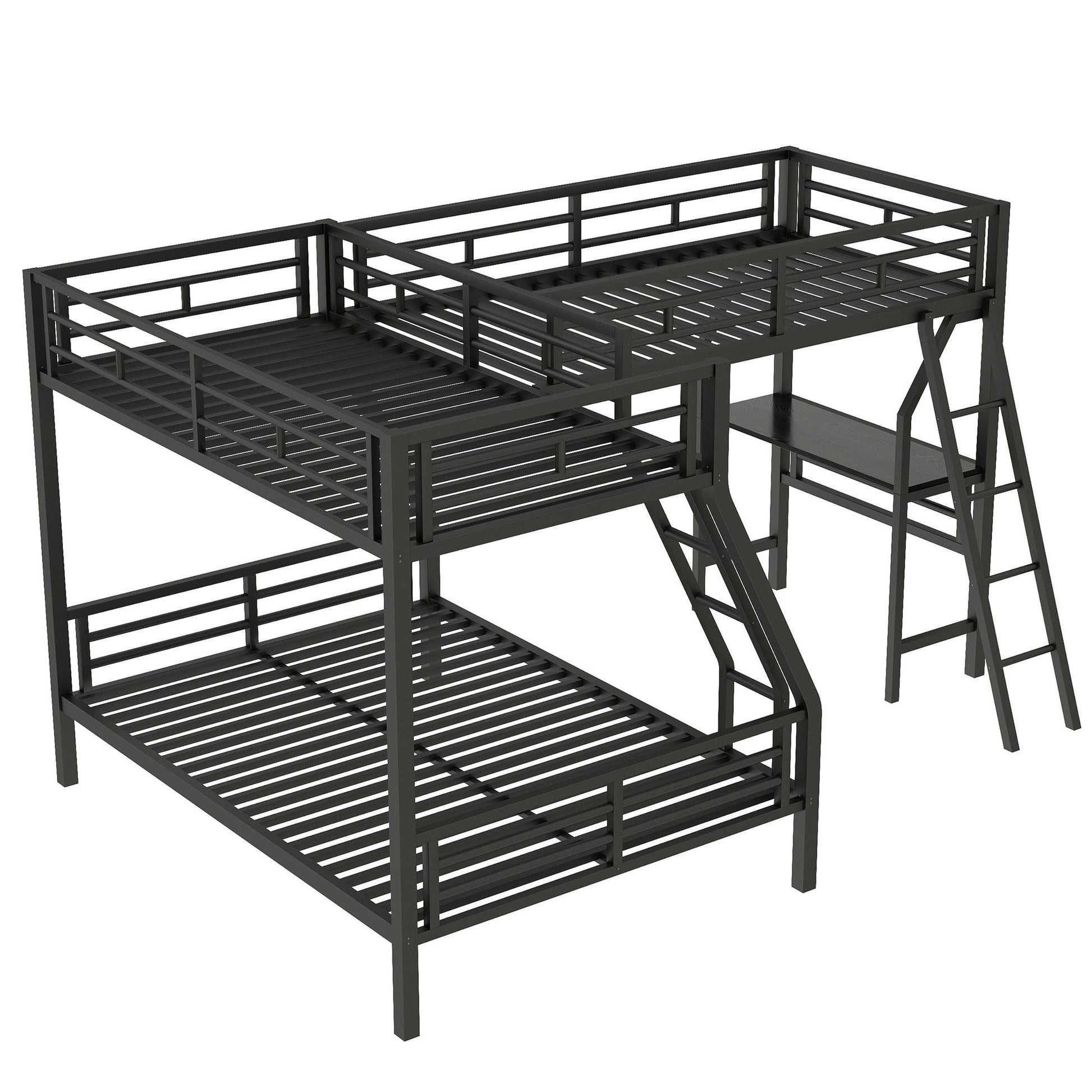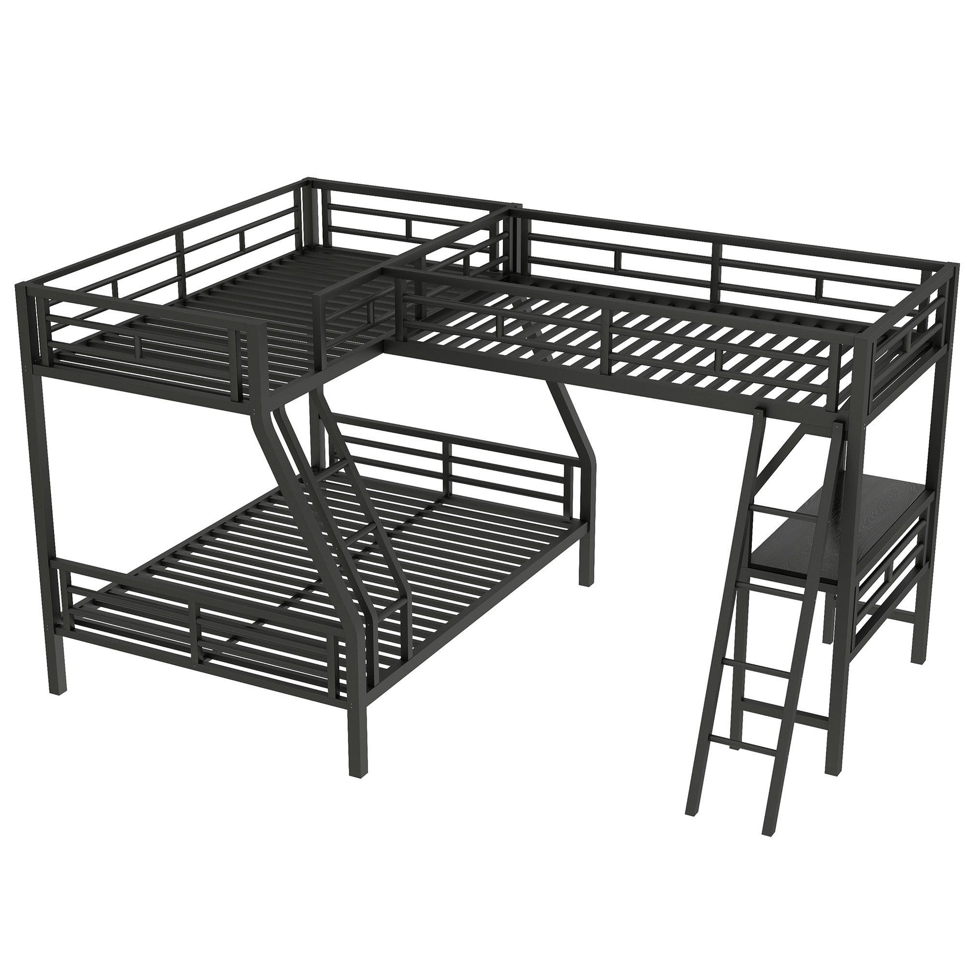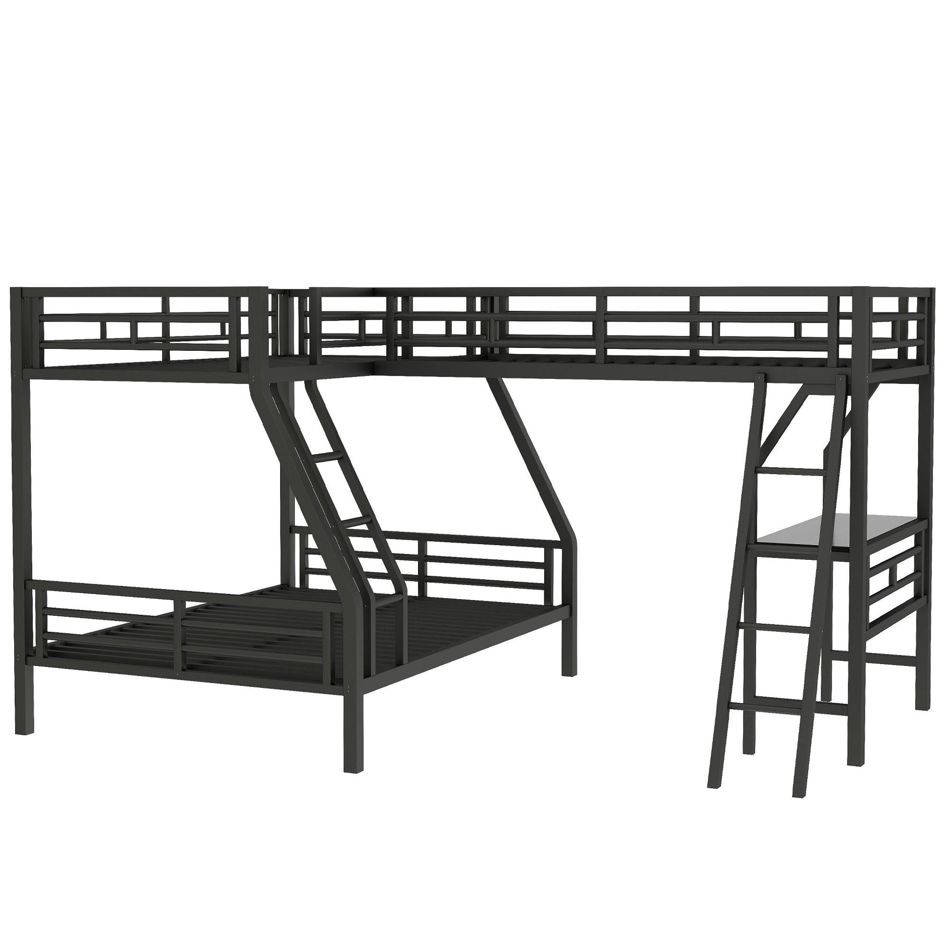Twin Over Full Bunk Bed With Loft And Desk, L-Shaped Design For 3 Sleepers - Black
