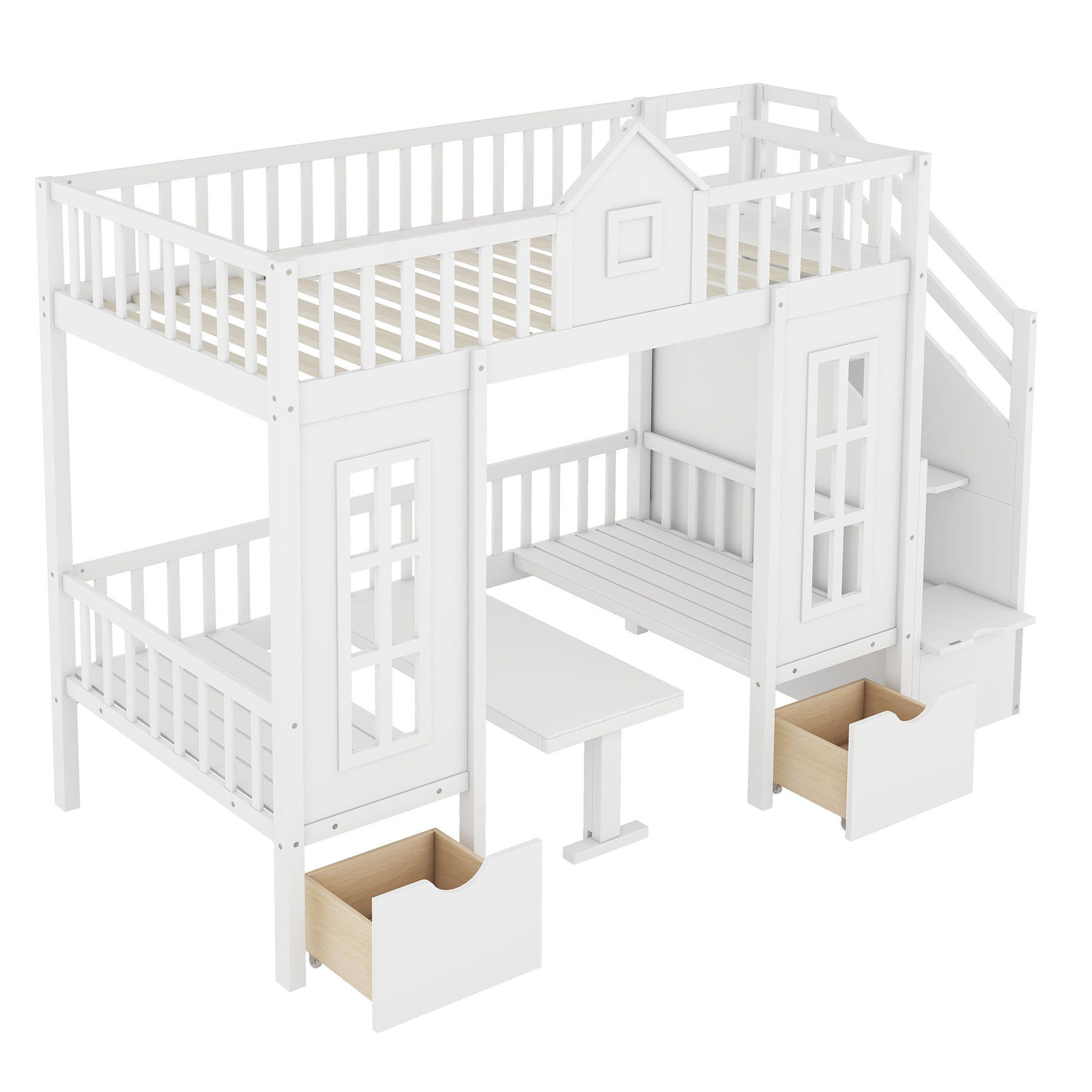 Twin Over Twin Bunk Bed With Changeable Table, Turn Into Upper Bed And Down Desk - White