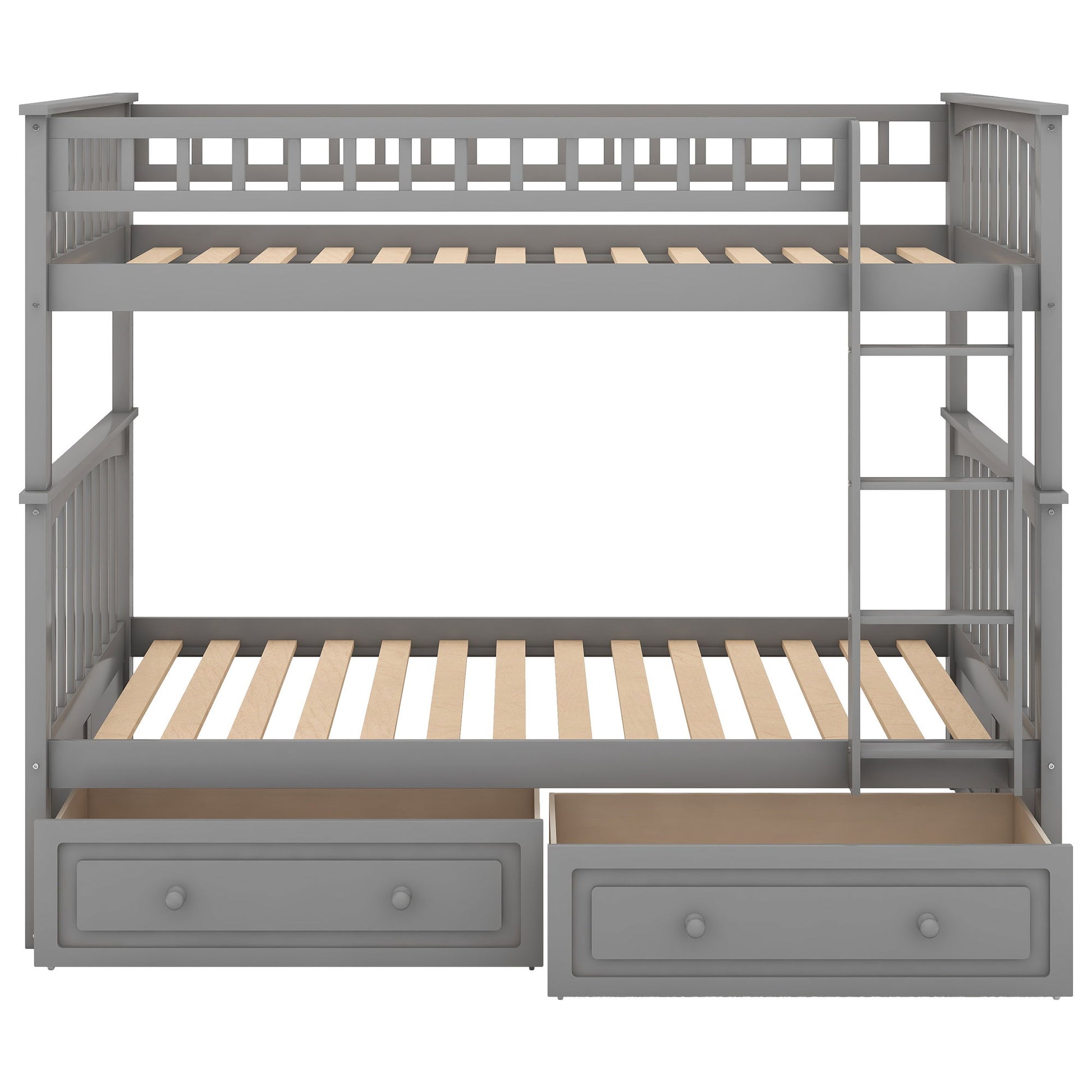 Twin Over Twin Bunk Bed With Drawers, Convertible Beds - Gray