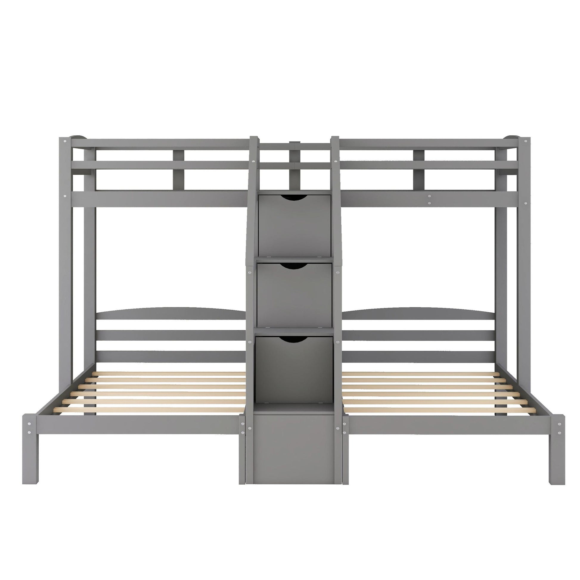 Twin Over Twin & Twin Bunk Bed With Built In Staircase And Storage Drawer - Gray