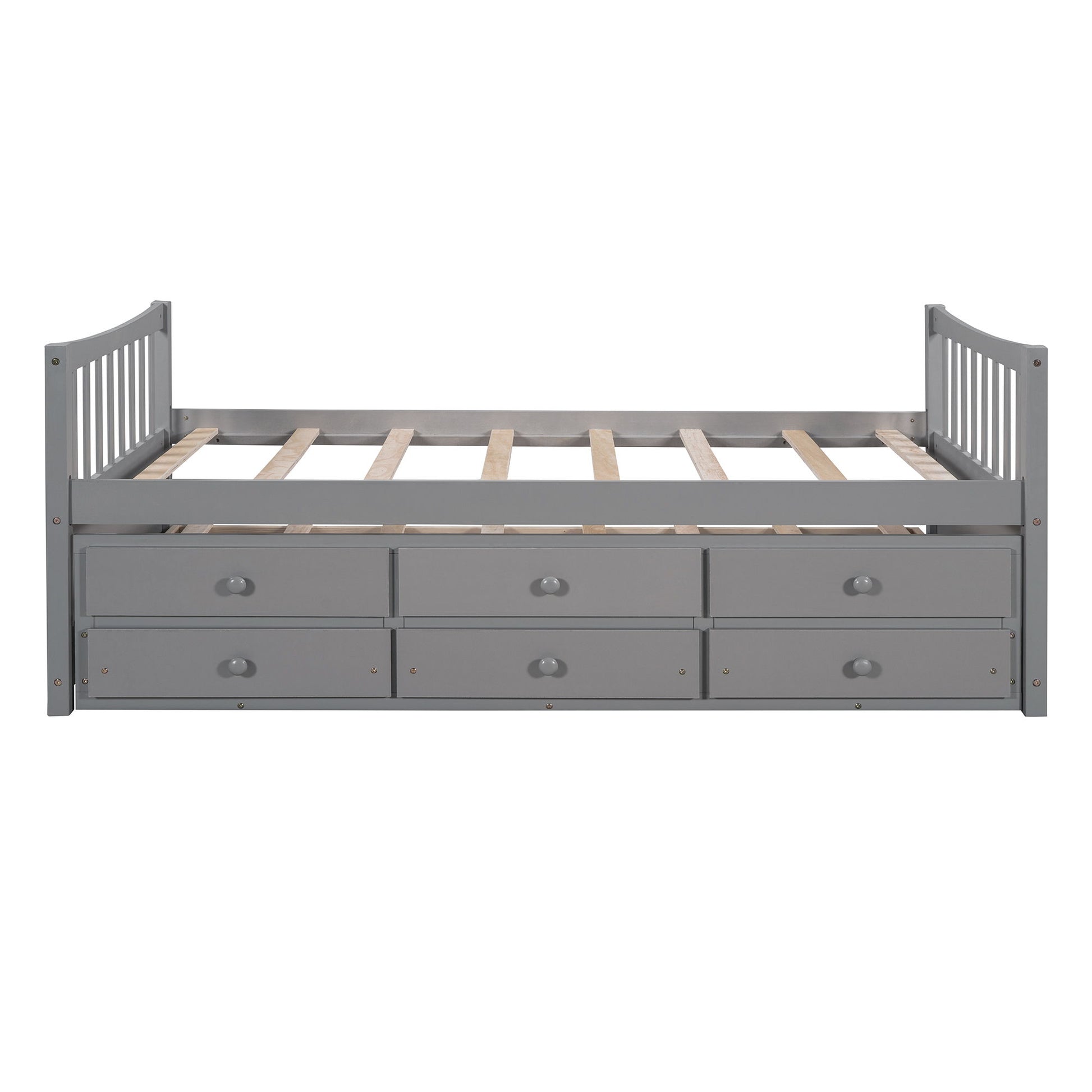 If you need extra sleeping space or your kids love sleepovers, this daybed with handy pull-out trundle and three drawers is perfect for your home. High-quality, solid and a strong, durable frame ensures stability and durability for long-term use. Slat kit included so box springs are not required. This daybed is designed with a clean silhouette and a hue of elegance. It suits all styles of home decoration, and completes the look of any bedroom.