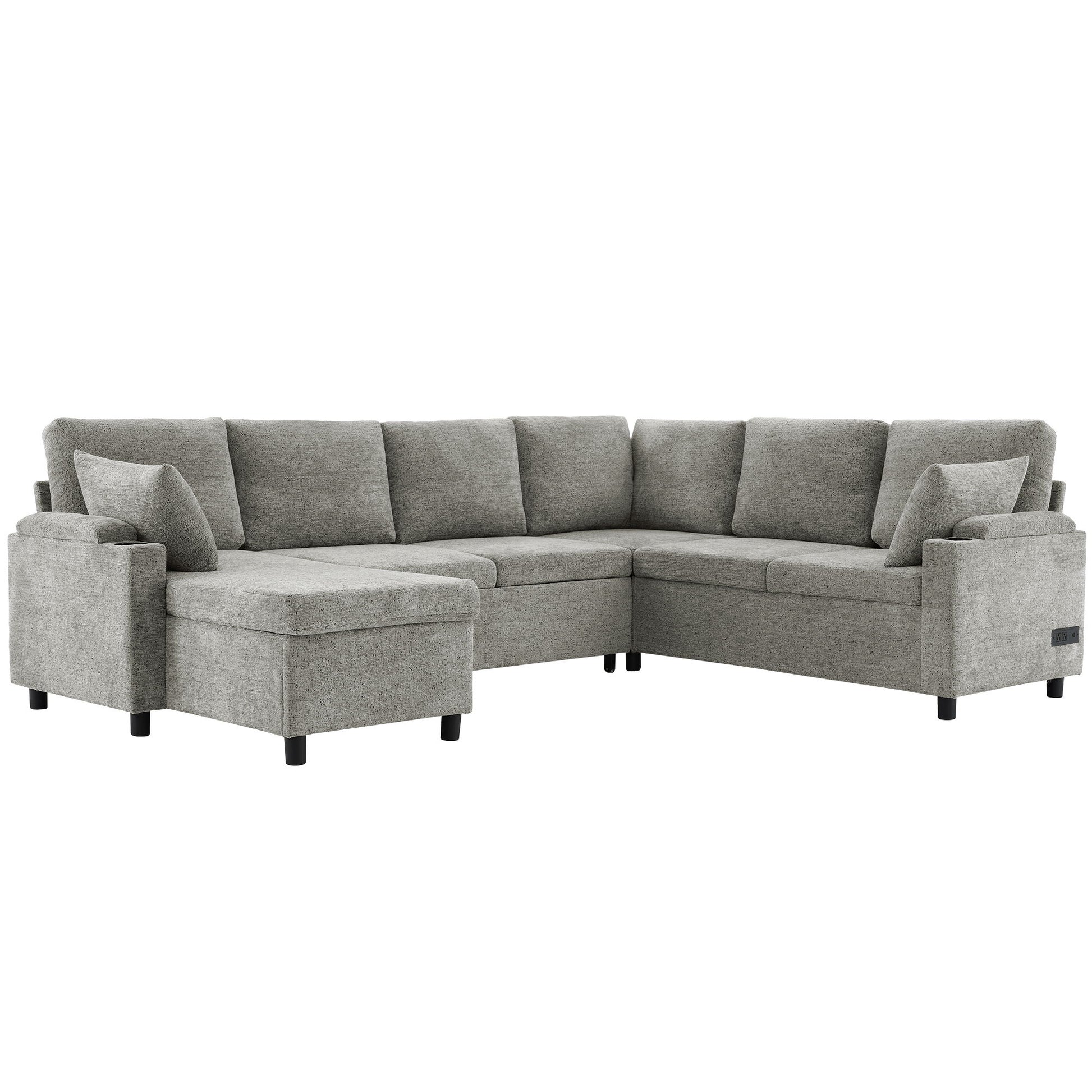 Sectional Sofa Versatile Sofa Bed Sofa Sleeper U - Shaped Sofa With Ample Storage Space, 2 Cup Holders And Charging Ports For Living Room - Light Gray