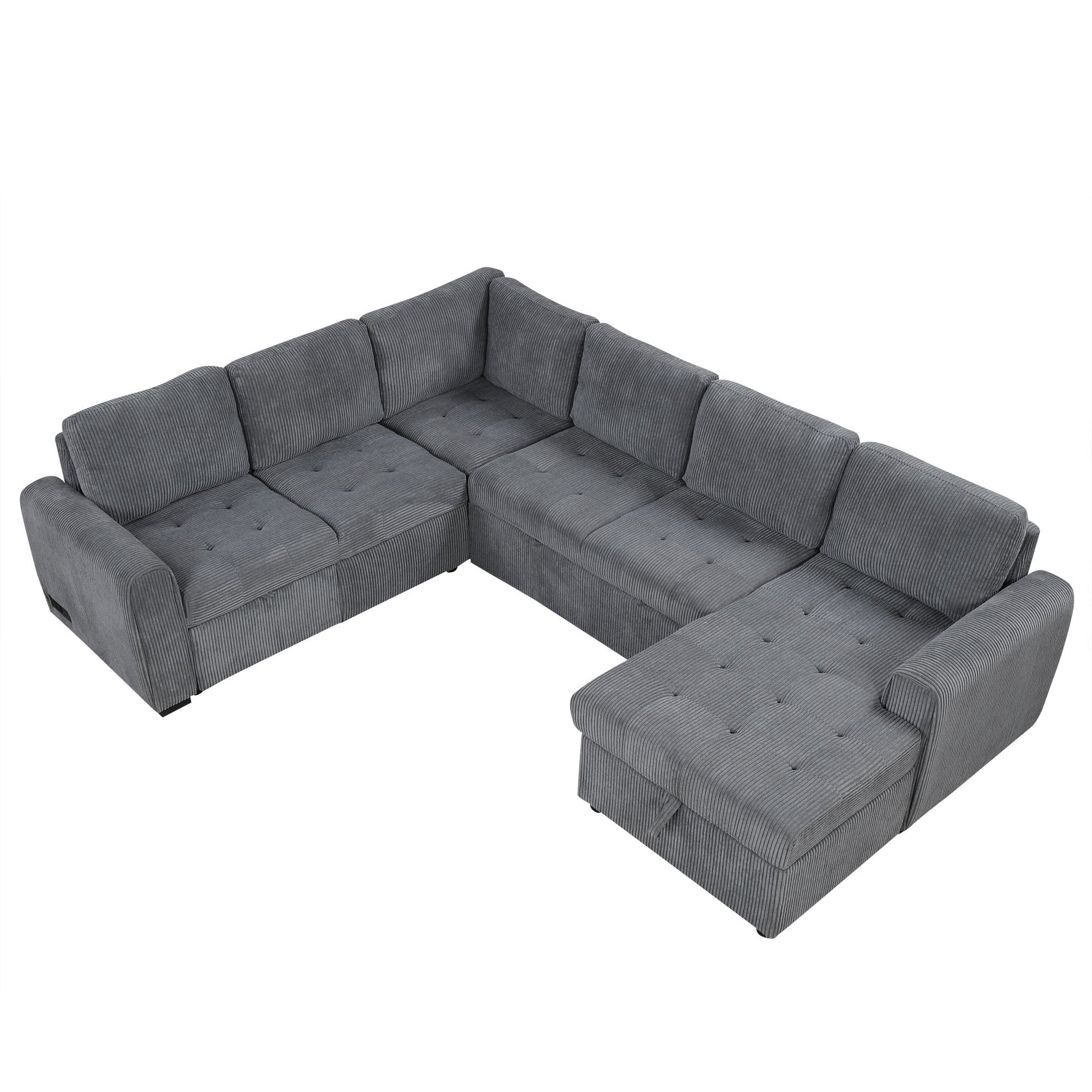U-Shaped Sofa Sectional Sofa Pull-Out Sofa Bed With A Storage Chaise Lounge, Charging Devices For Living Room - Gray