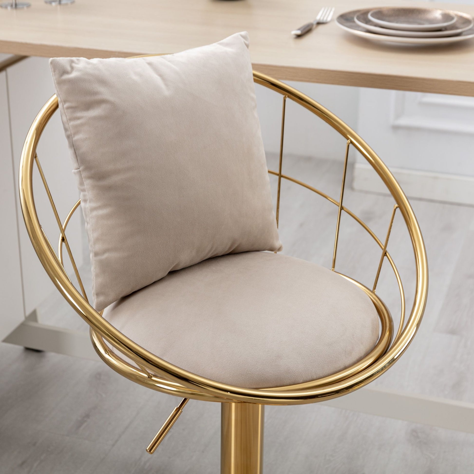 Velvet Bar Chair, Pure Gold Plated, Unique Design, 360 Degree Rotation, Adjustable Height, Suitable For Dining Room And Bar, (Set of 2) - Off White