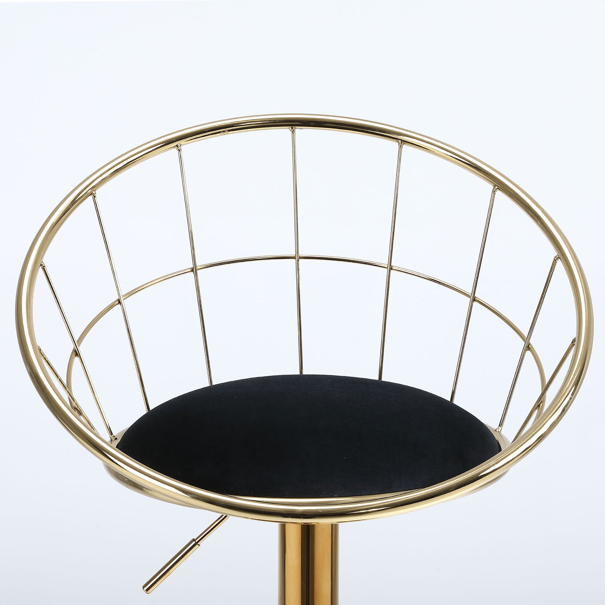 Velvet Bar Chair, Pure Gold Plated, Unique Design, 360 Degree Rotation, Adjustable Height, Suitable For Dining Room And Bar, (Set of 2) - Black