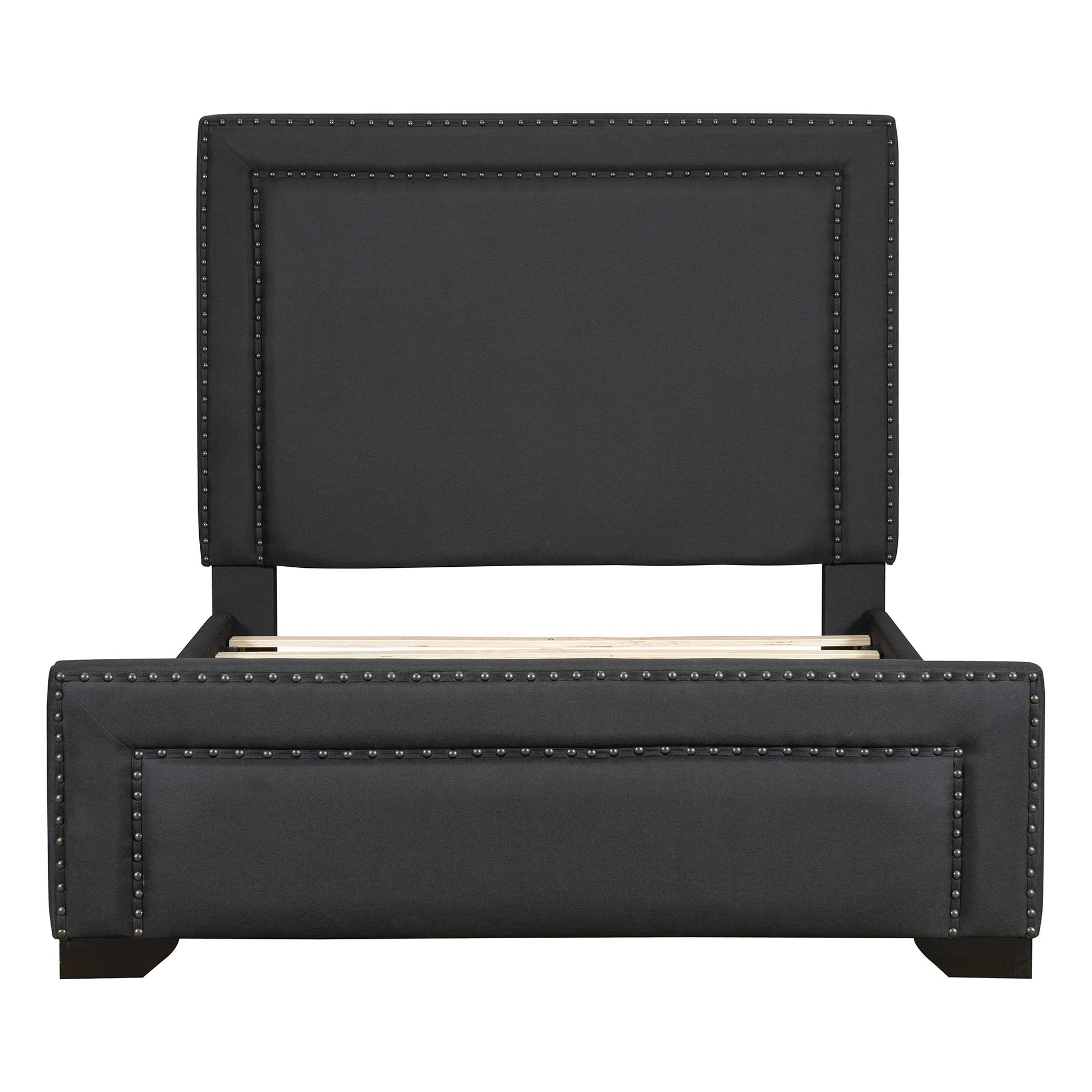 Queen Size Upholstered Bed With Slats Support, No Box Spring Needed - Gray