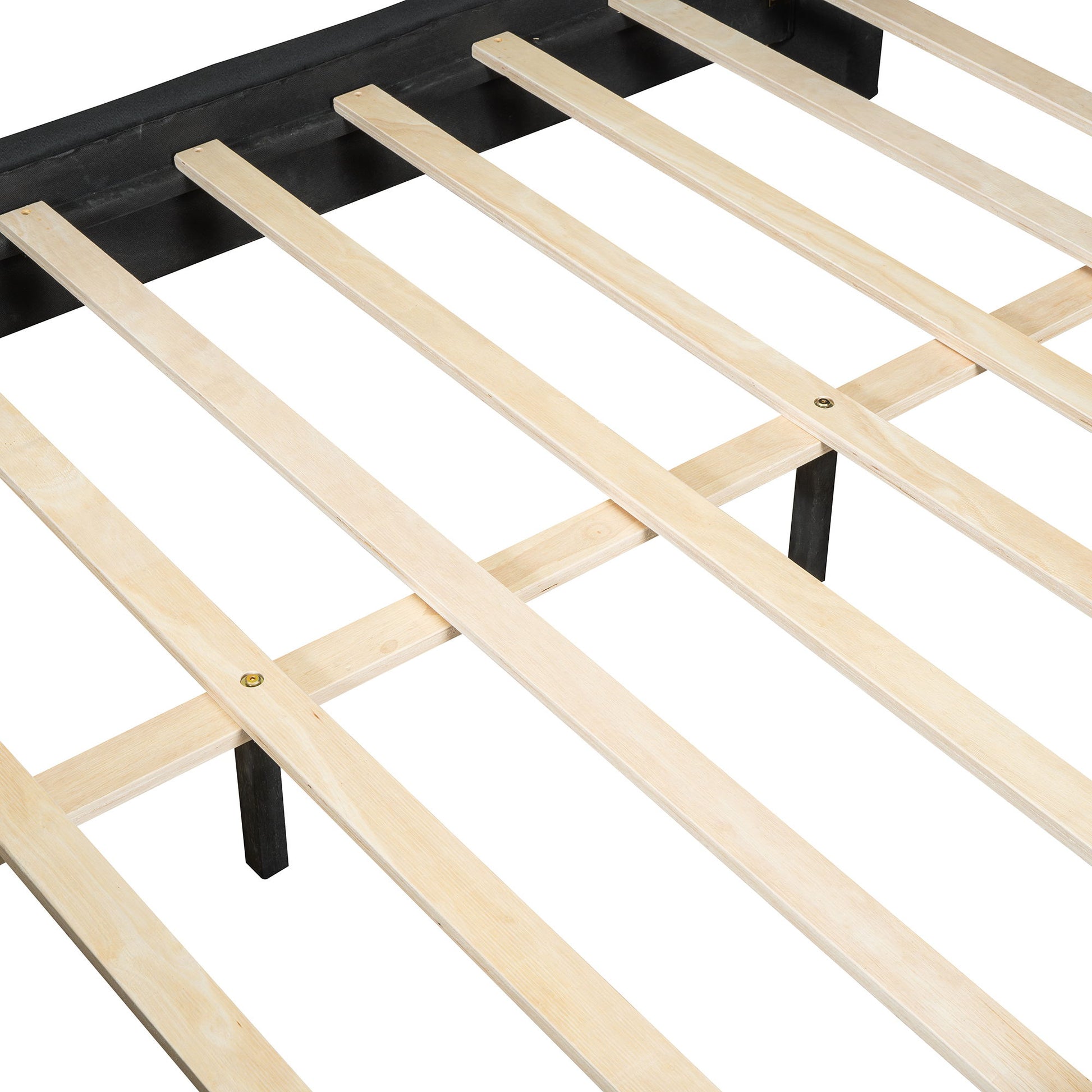 Queen Size Upholstered Bed With Slats Support, No Box Spring Needed - Black