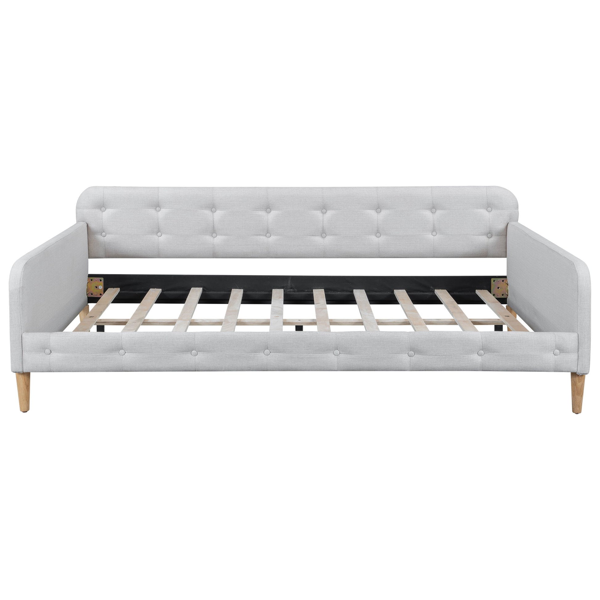 - Modern Design: Elegant linen upholstery with button-tufted backrest and recessed square arms for a contemporary look