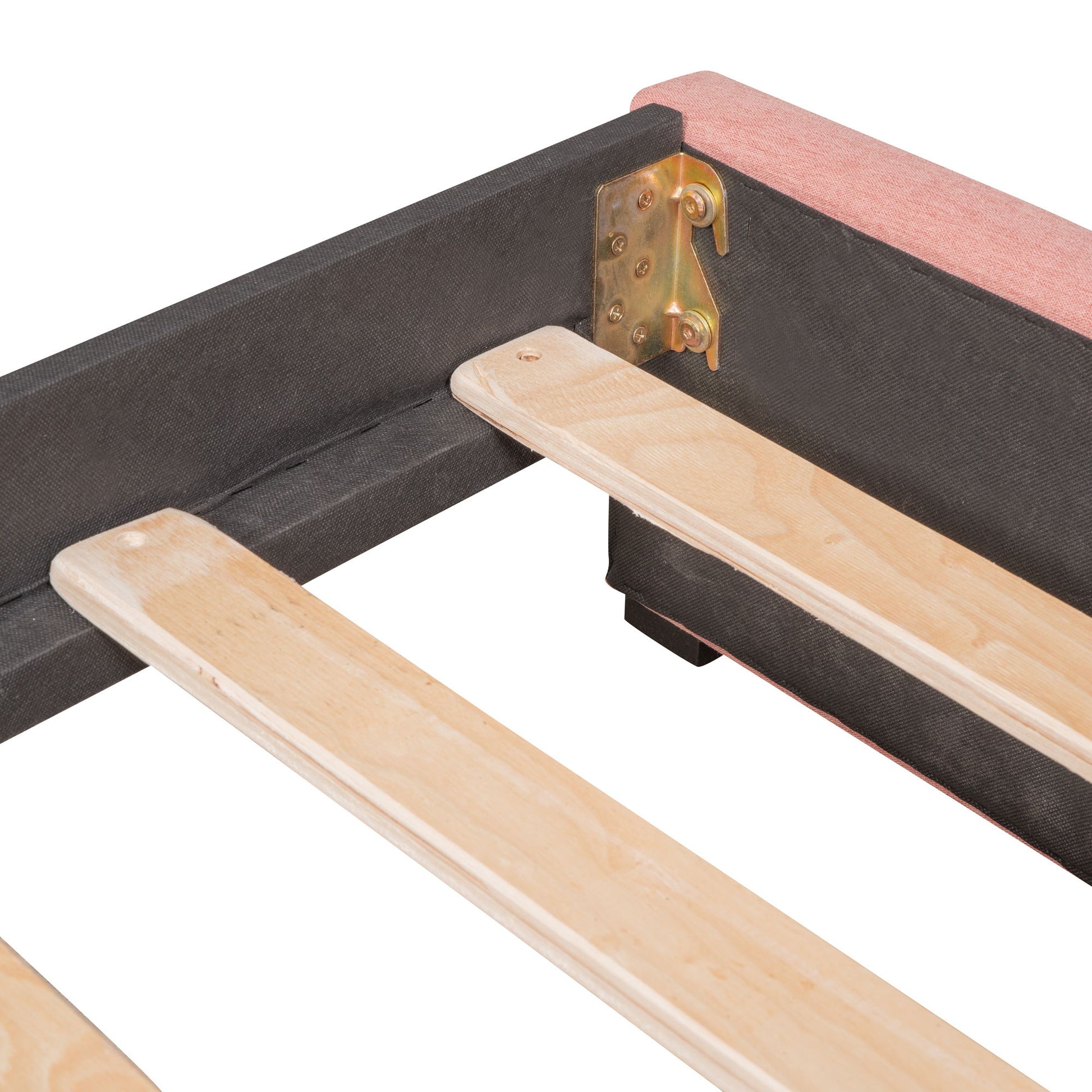 Upholstered Daybed With Trundle Twin Size Sofa Bed Frame No Box Spring Needed, Linen - Pink