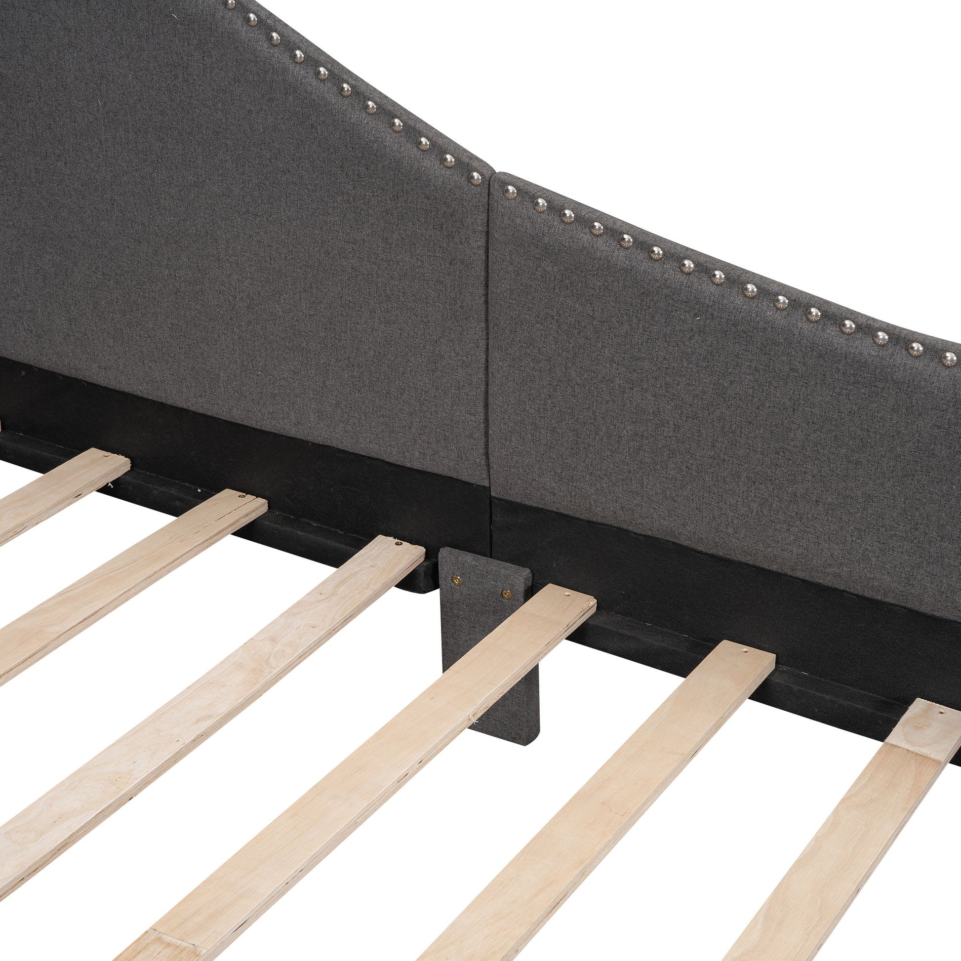 Full Size Upholstered Daybed With Headboard And Armrest, Support Legs - Gray