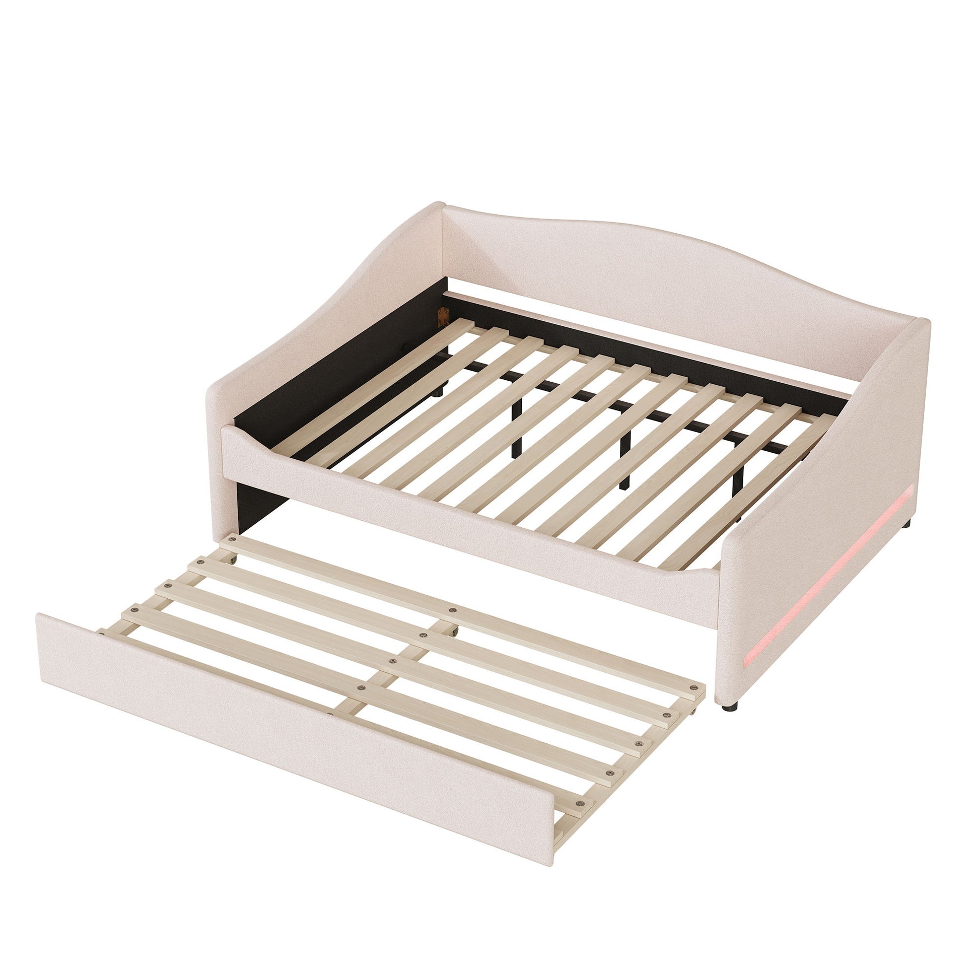 Full Size Upholstered Daybed With Light And Trundle - Pink