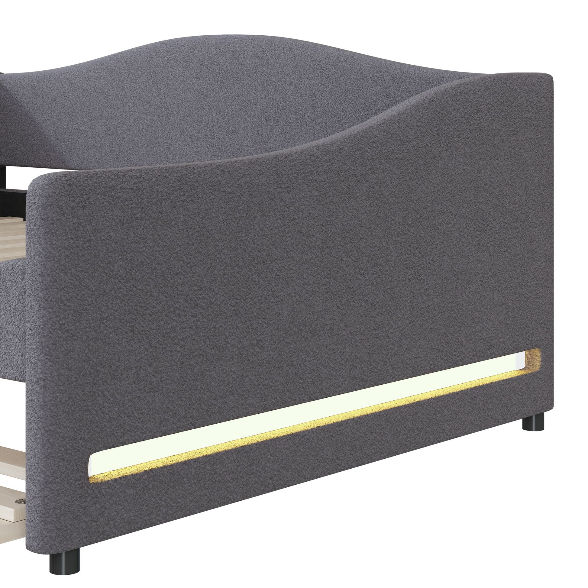 Eye-catching Design: Embossed with light stripes on each side, this daybed adds an artistic atmosphere to your home. The modern track-style frame serves as a striking focal point, while the design itself offers a sense of ease and comfort.