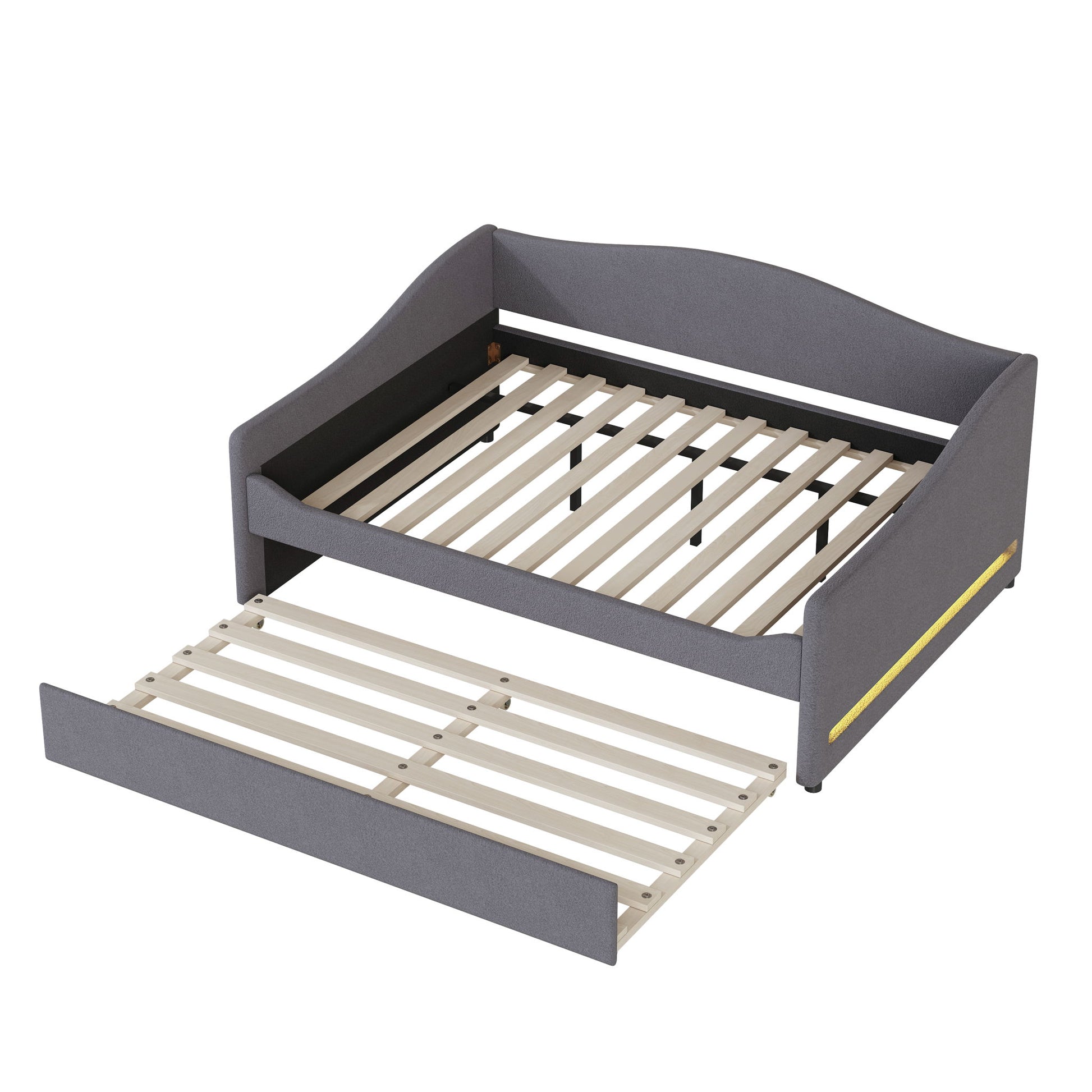 Full Size Upholstered Daybed With Light And Trundle - Gray