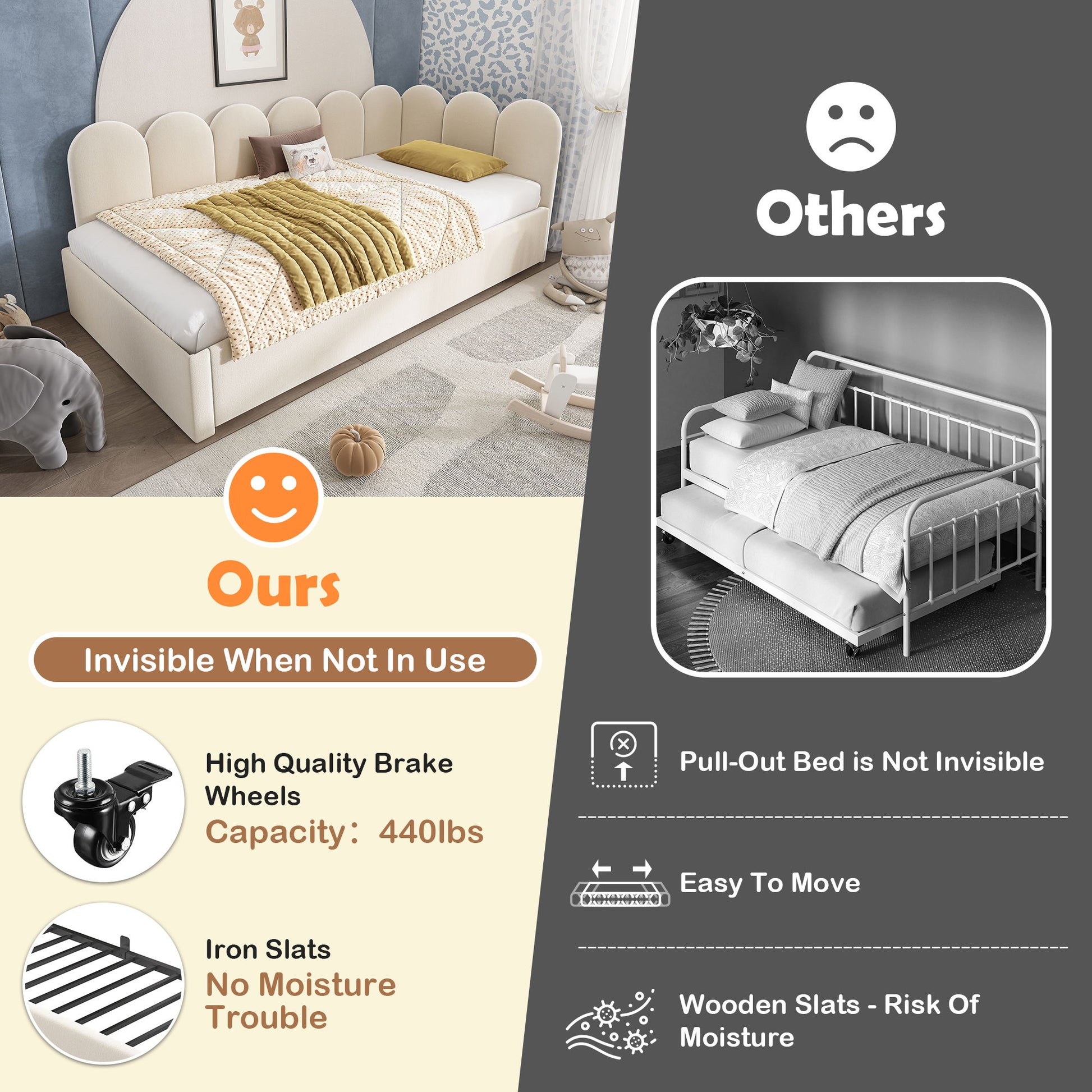 Twin Size Sofa L-Shaped Daybed With Pull Out Twin Bed - Beige