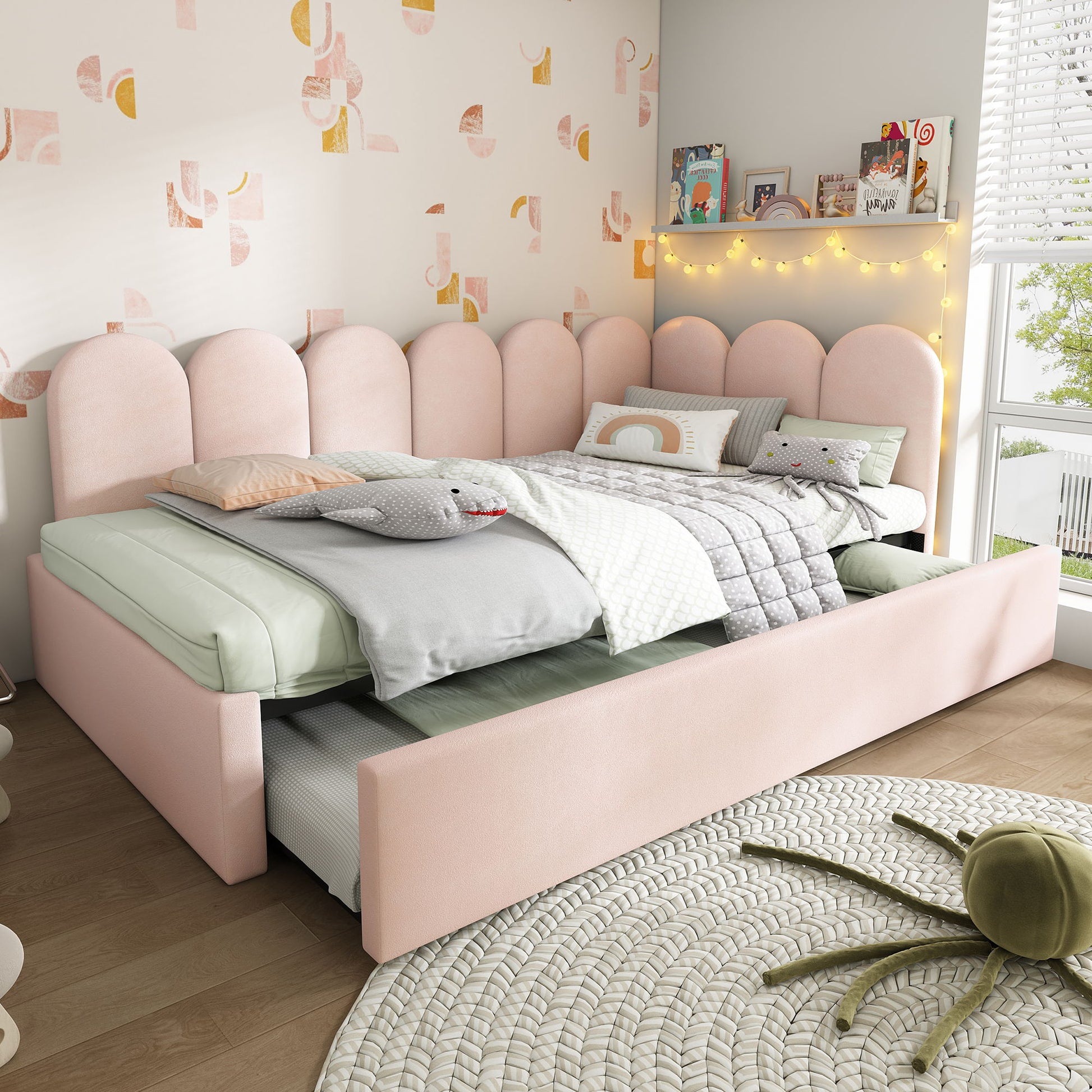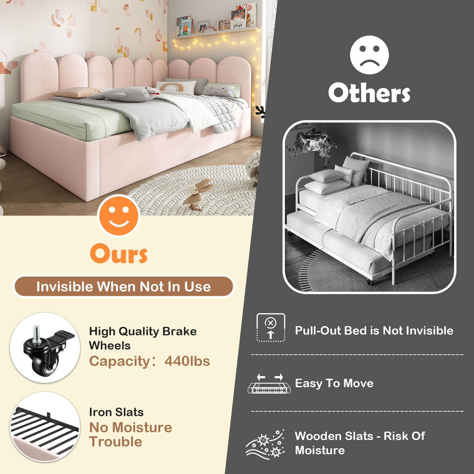Twin Size Sofa L-Shaped Daybed With Pull Out Twin Bed - Pink