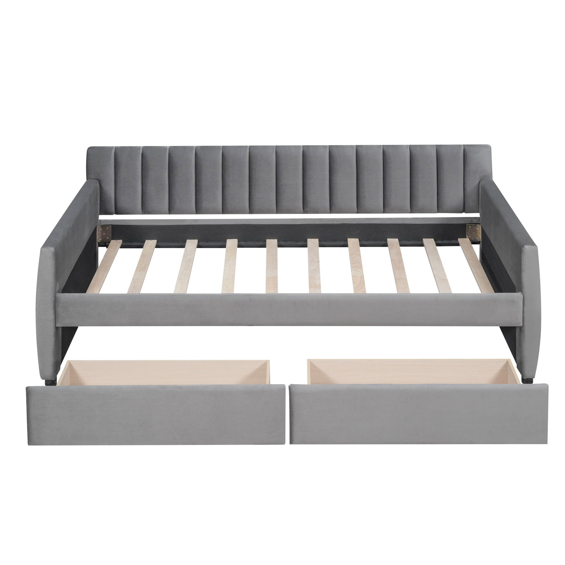 Twin Size Upholstered Daybed & Drawers, Slat Support - Gray