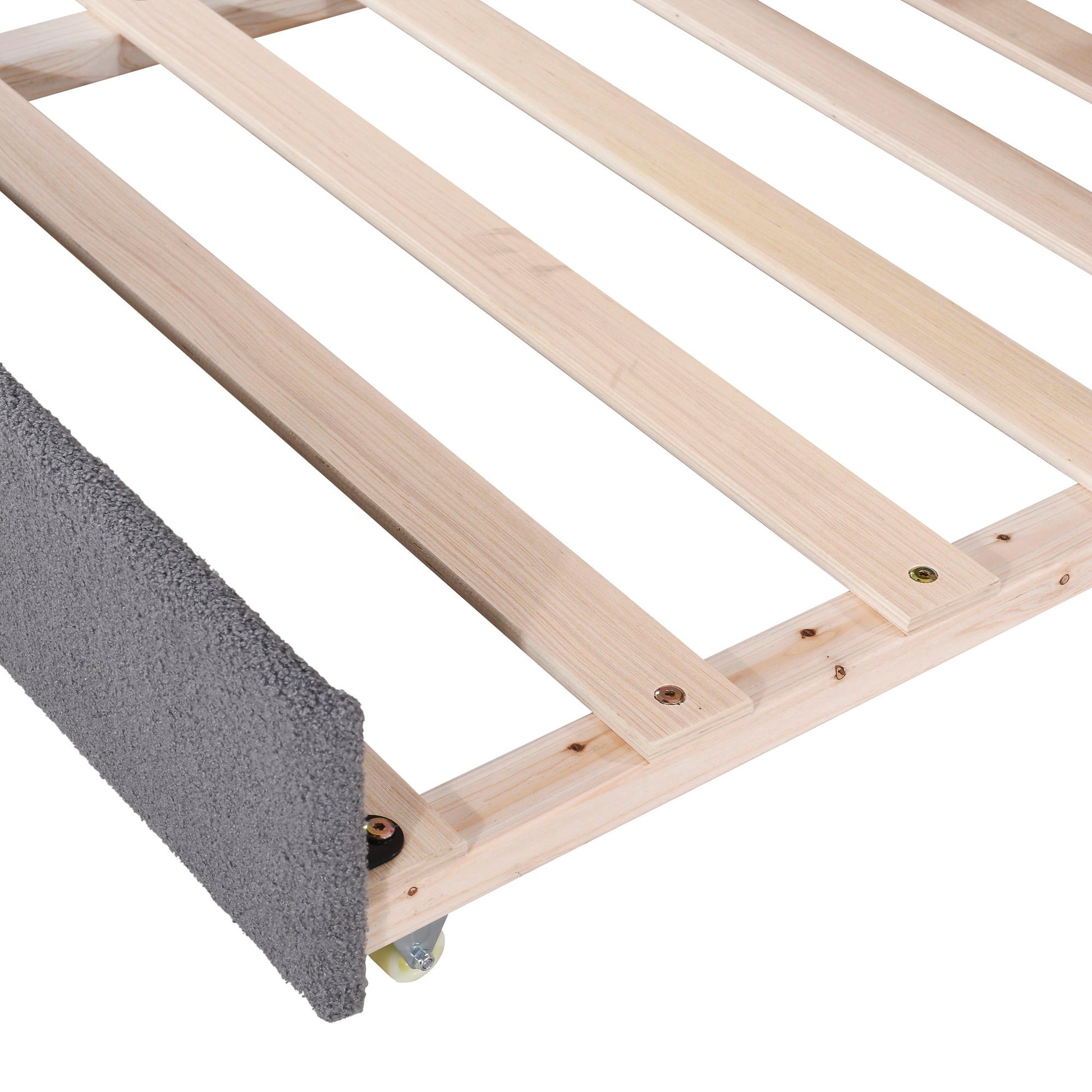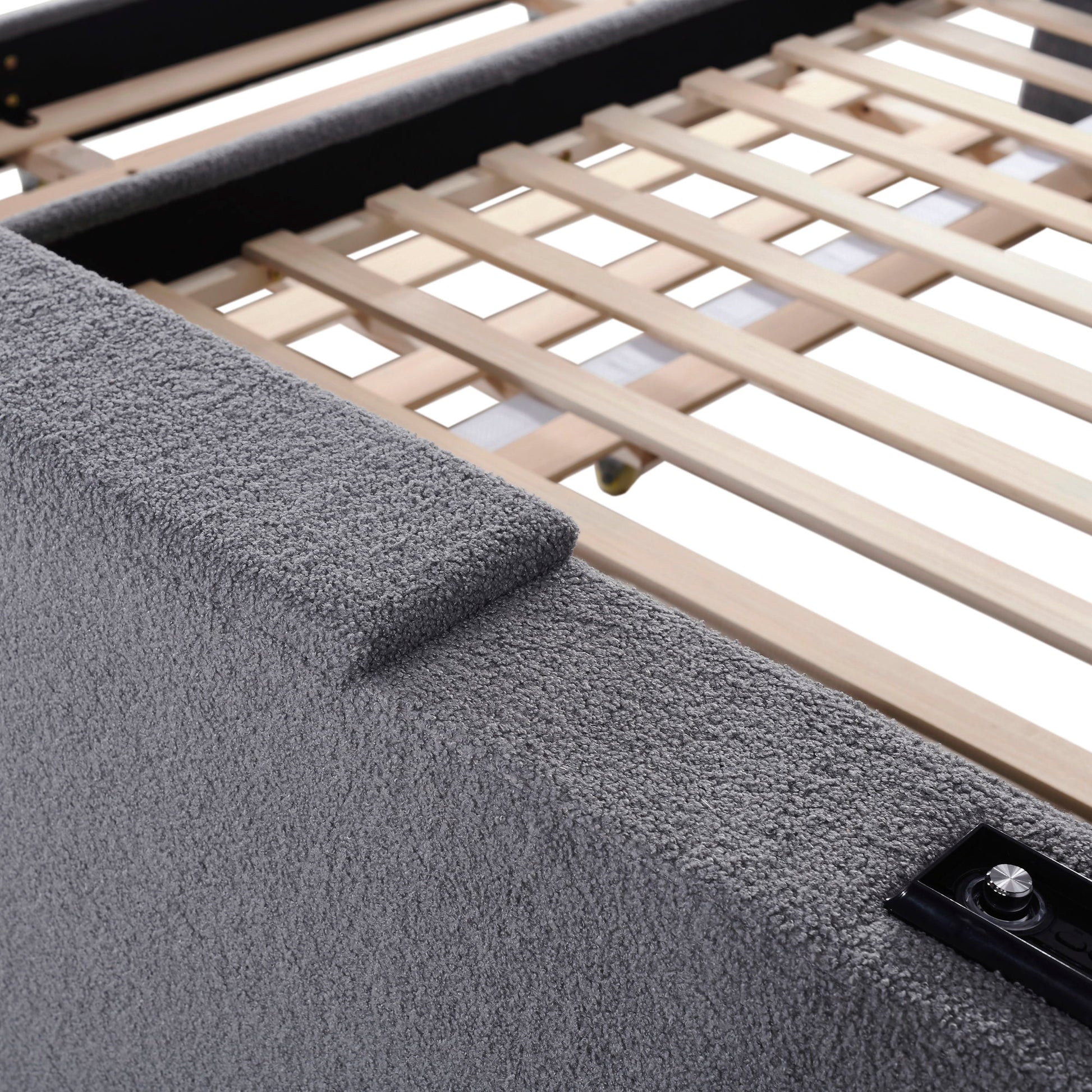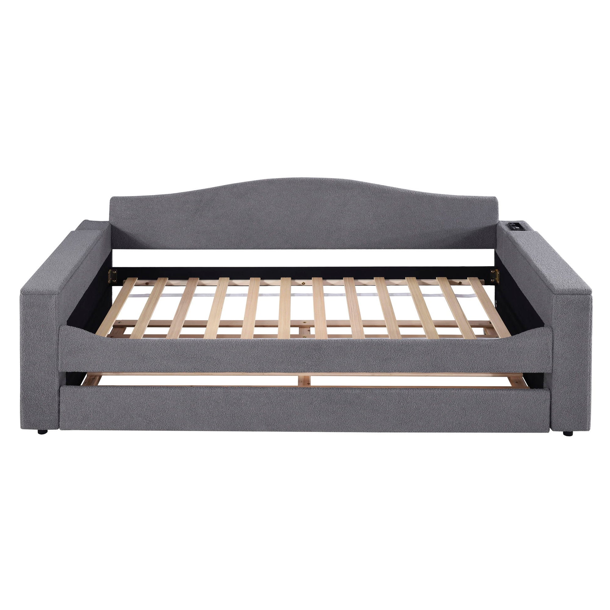 Full Size Upholstered Daybed With Storage Armrests, Trundle And Latest Integrated Bluetooth Audio System, Teddy Fleece - Gray