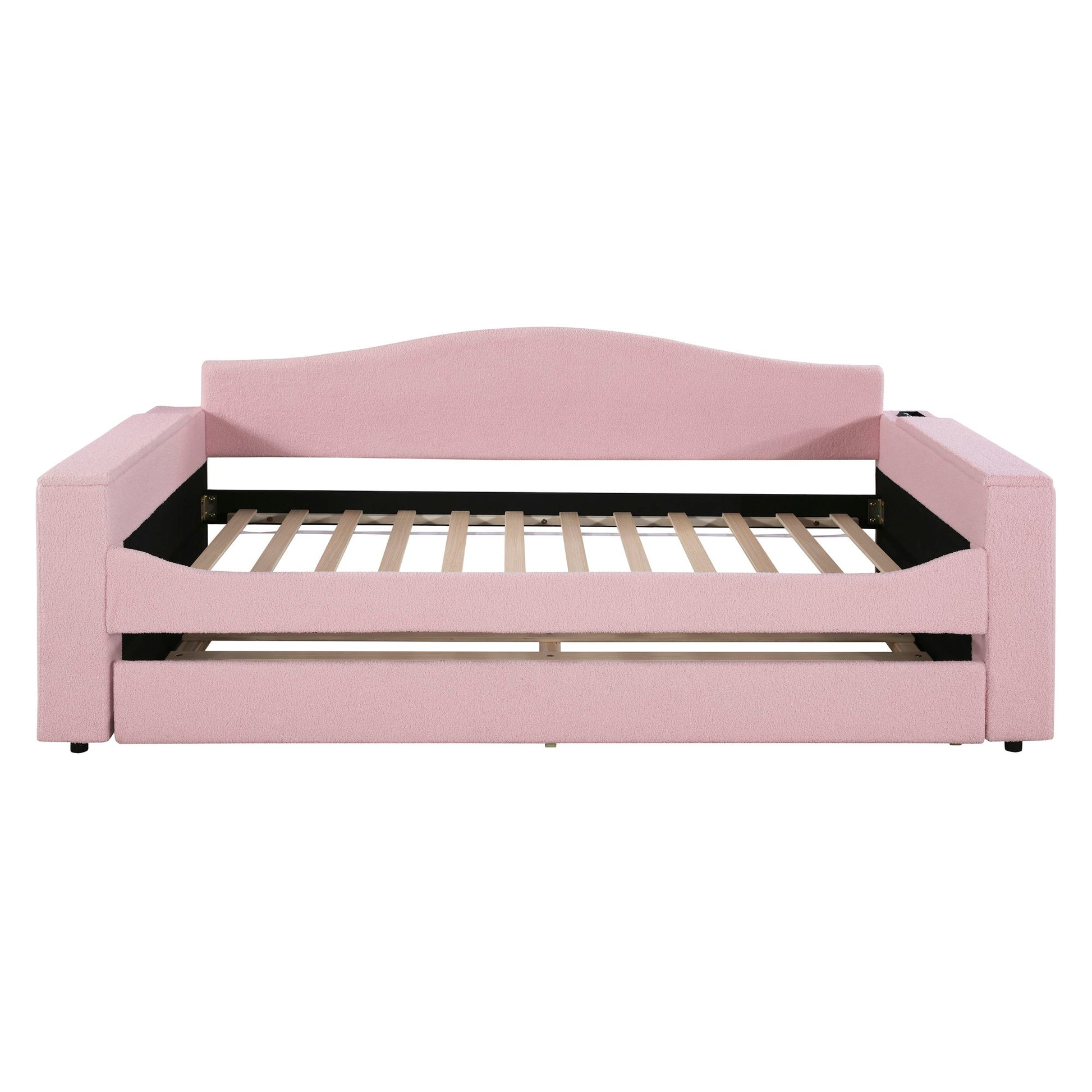 Twin Size Upholstered Daybed With Storage Armrests, Trundle And Latest Integrated Bluetooth Audio System - Pink