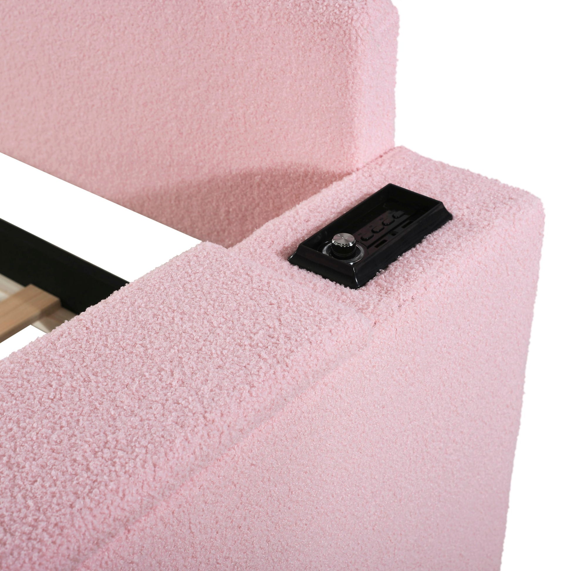 Full Size Upholstered Daybed With Storage Armrests, Trundle And Latest Integrated Bluetooth Audio System, Teddy Fleece - Pink