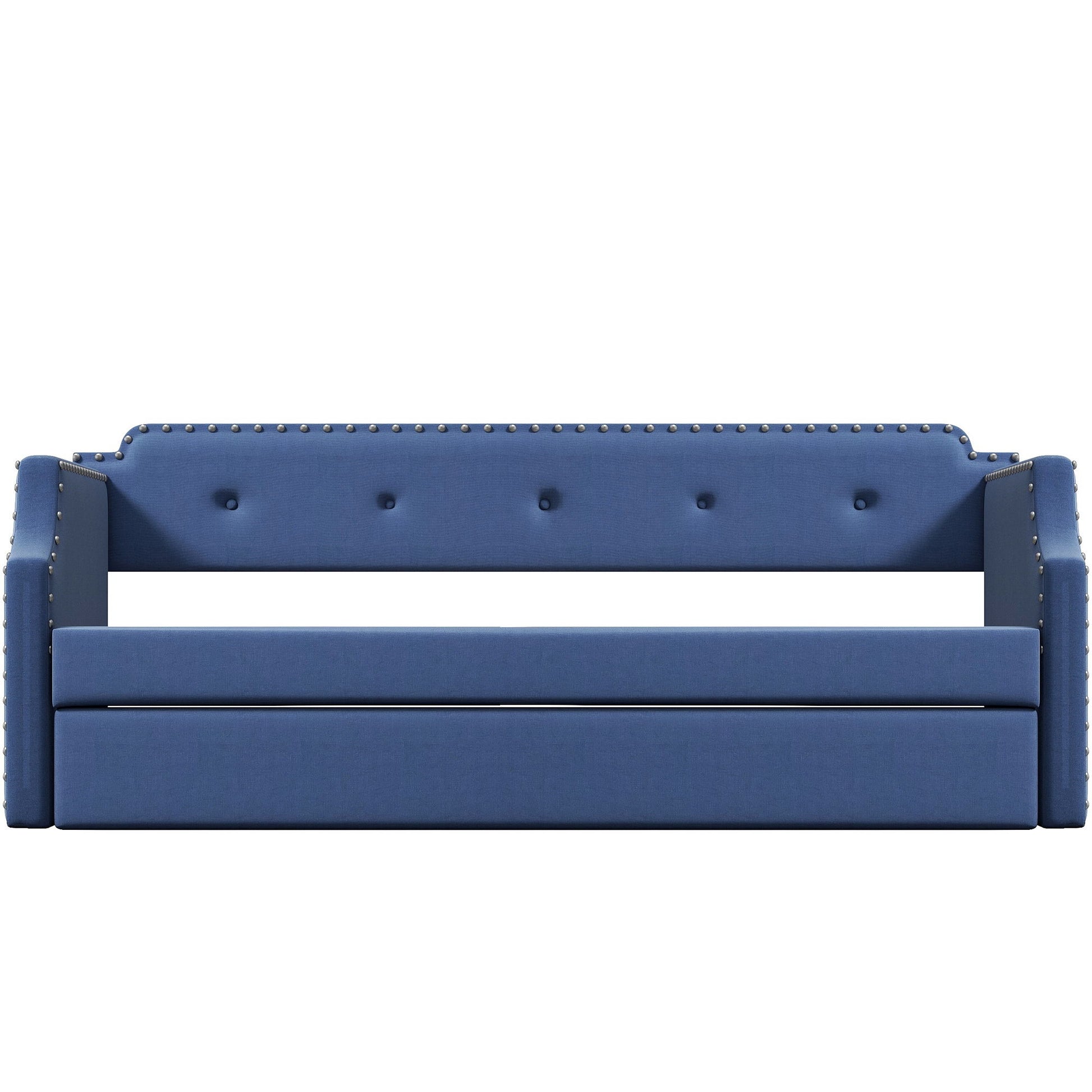 Upholstered Daybed With Trundle, Twin, Slat Support - Blue