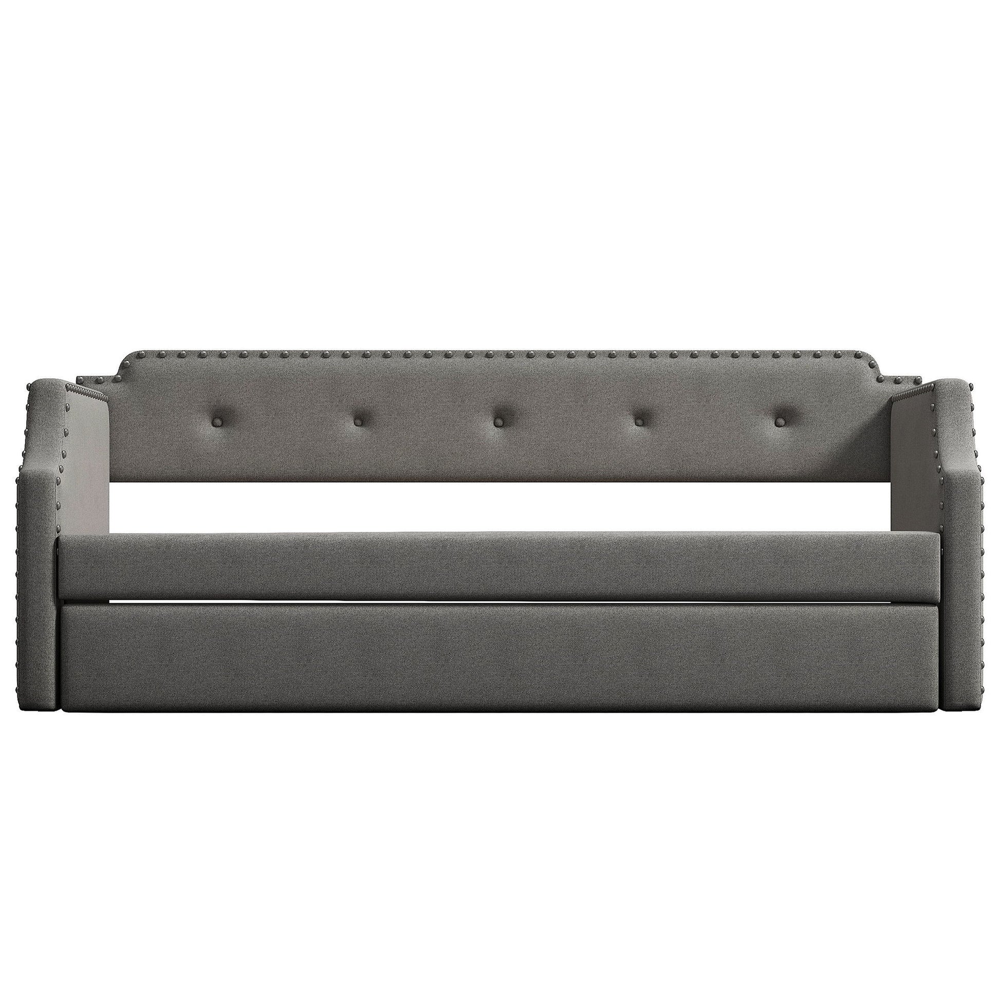 Upholstered Daybed With Trundle, Twin, Slat Support - Gray