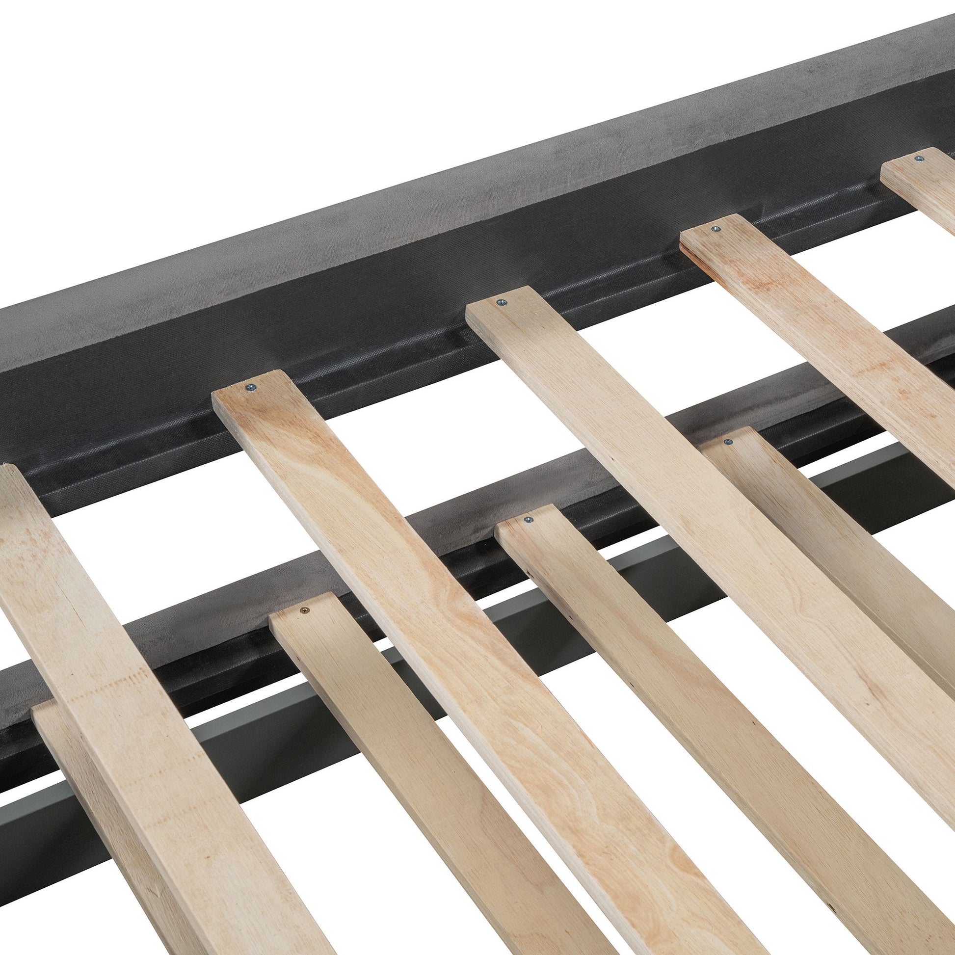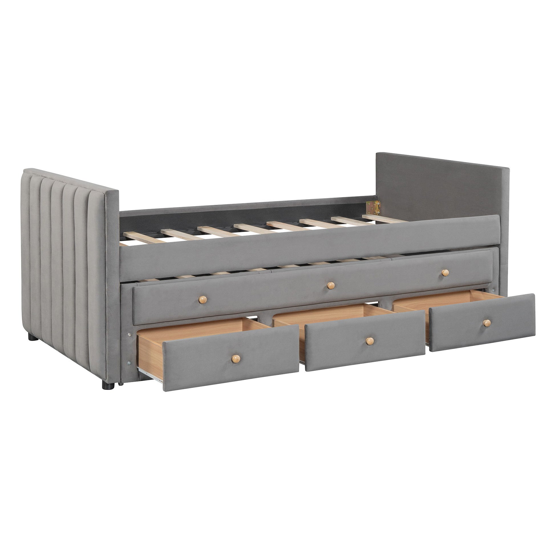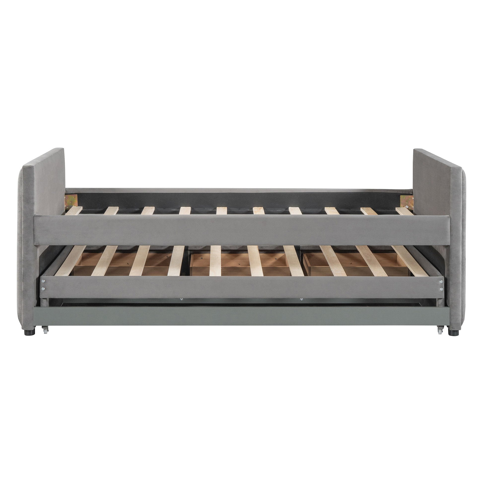 Twin Size Upholstered Daybed With Twin Size Trundle And Drawers - Gray