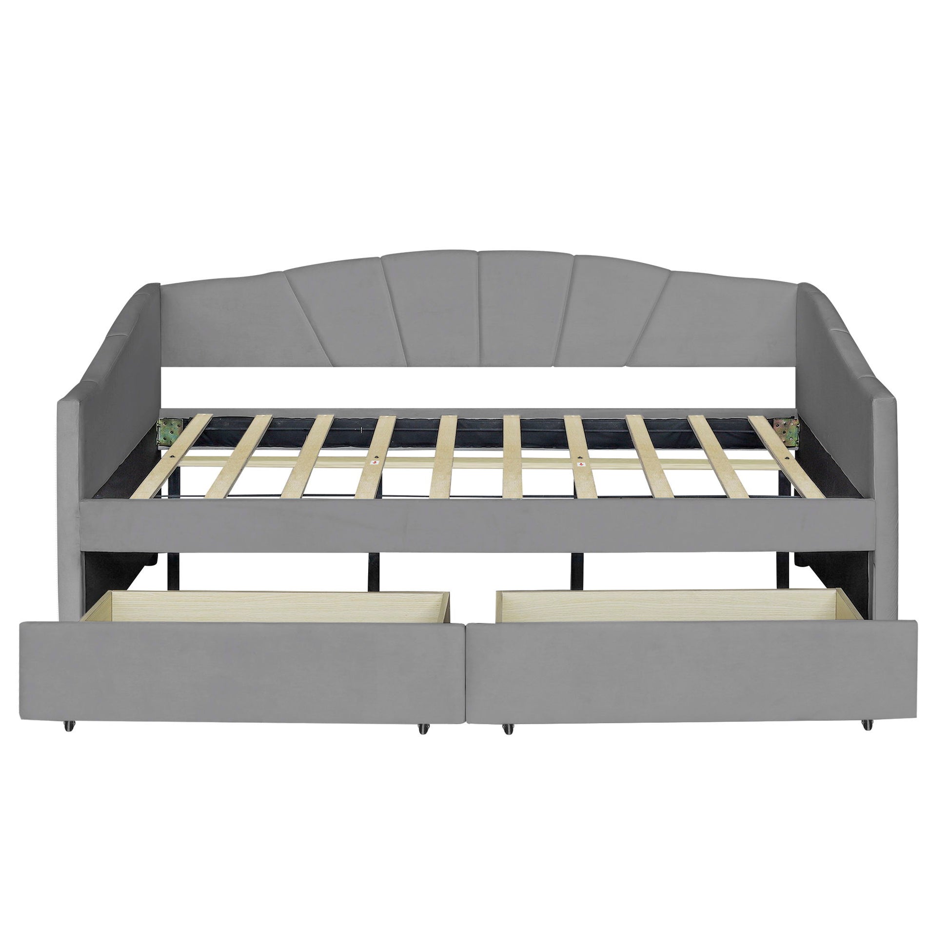 Twin Size Upholstered Daybed With Two Drawers And Slat - Gray