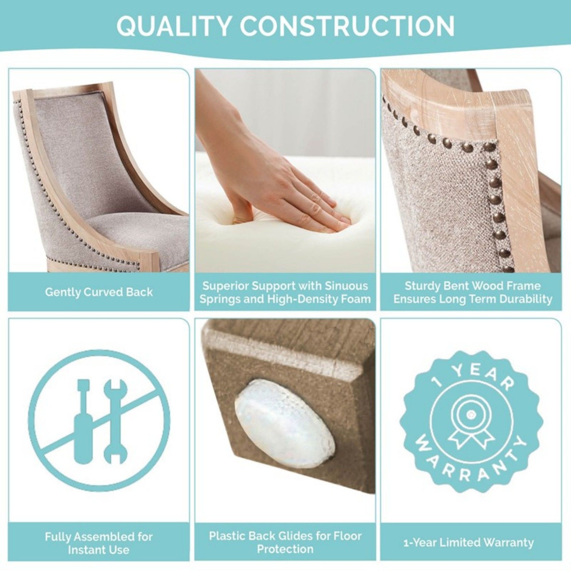 Upholstered Dining Chair With Nailhead Trim - Beige / Natural