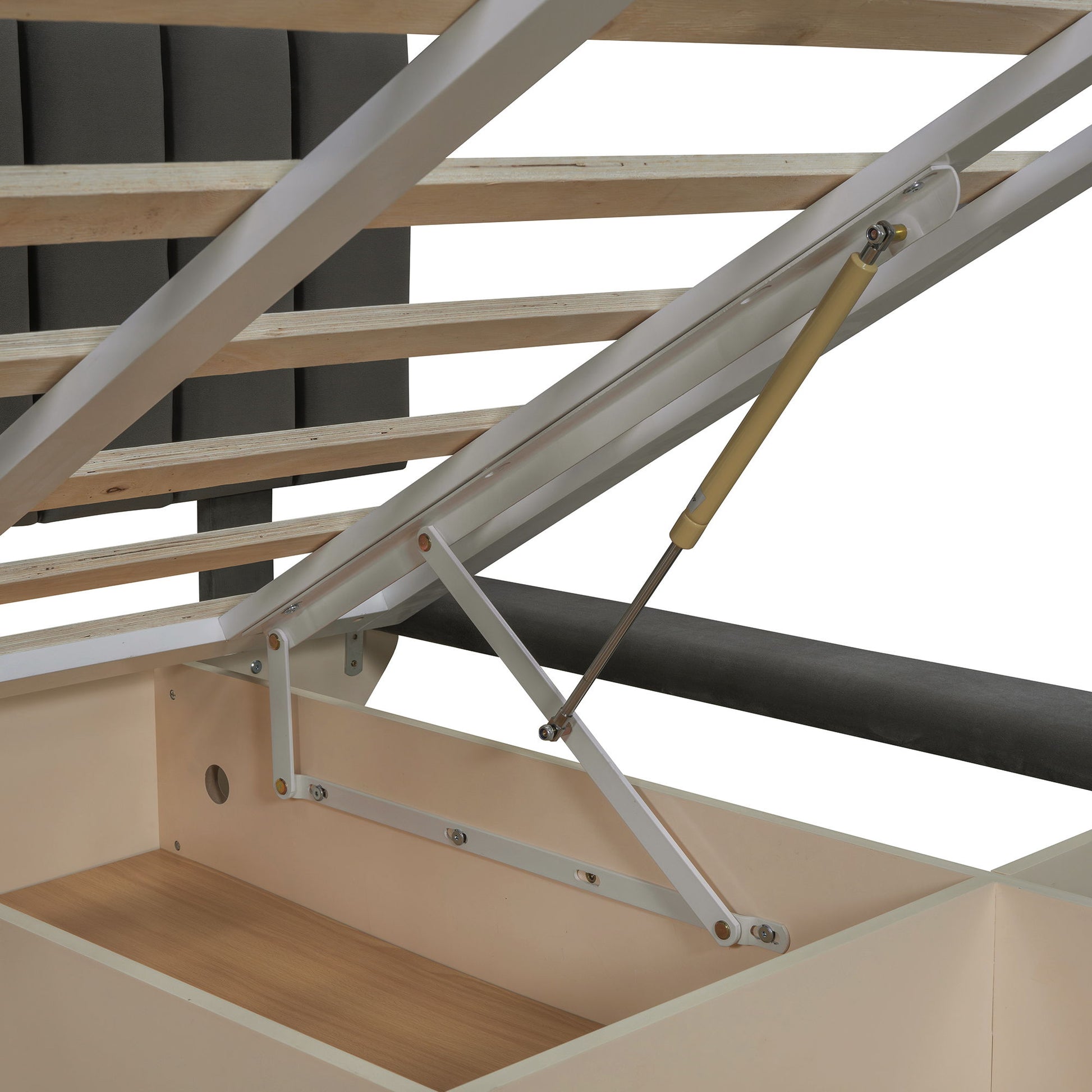 4 Storage Compartments: Four roomy under-bed compartments (hydraulic lift access) neatly store bedding, books, or seasonal items while maintaining a clutter-free space.