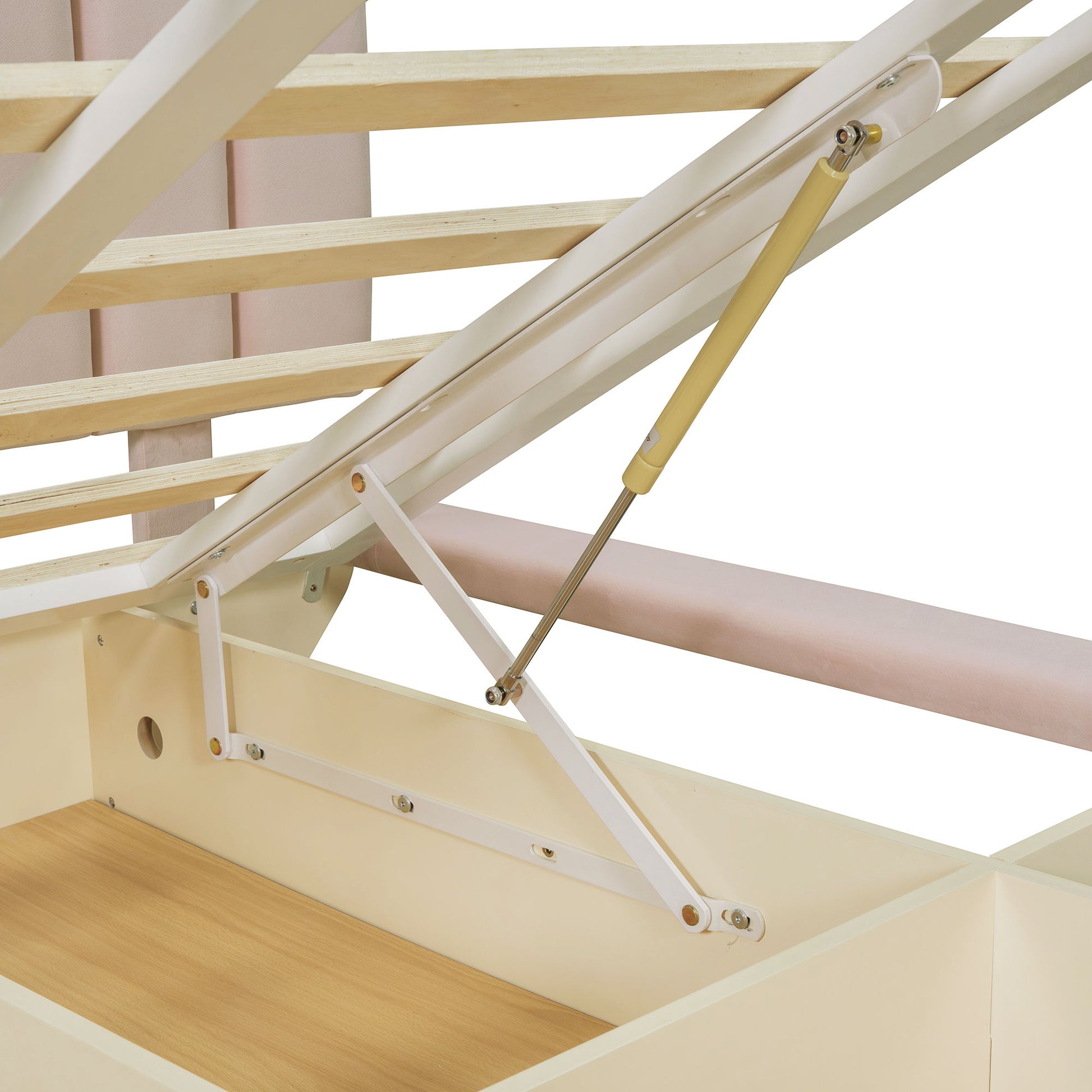 Queen Size Upholstered Hydrualic Platform Floating Bed With LED Light And USB Port - Pink