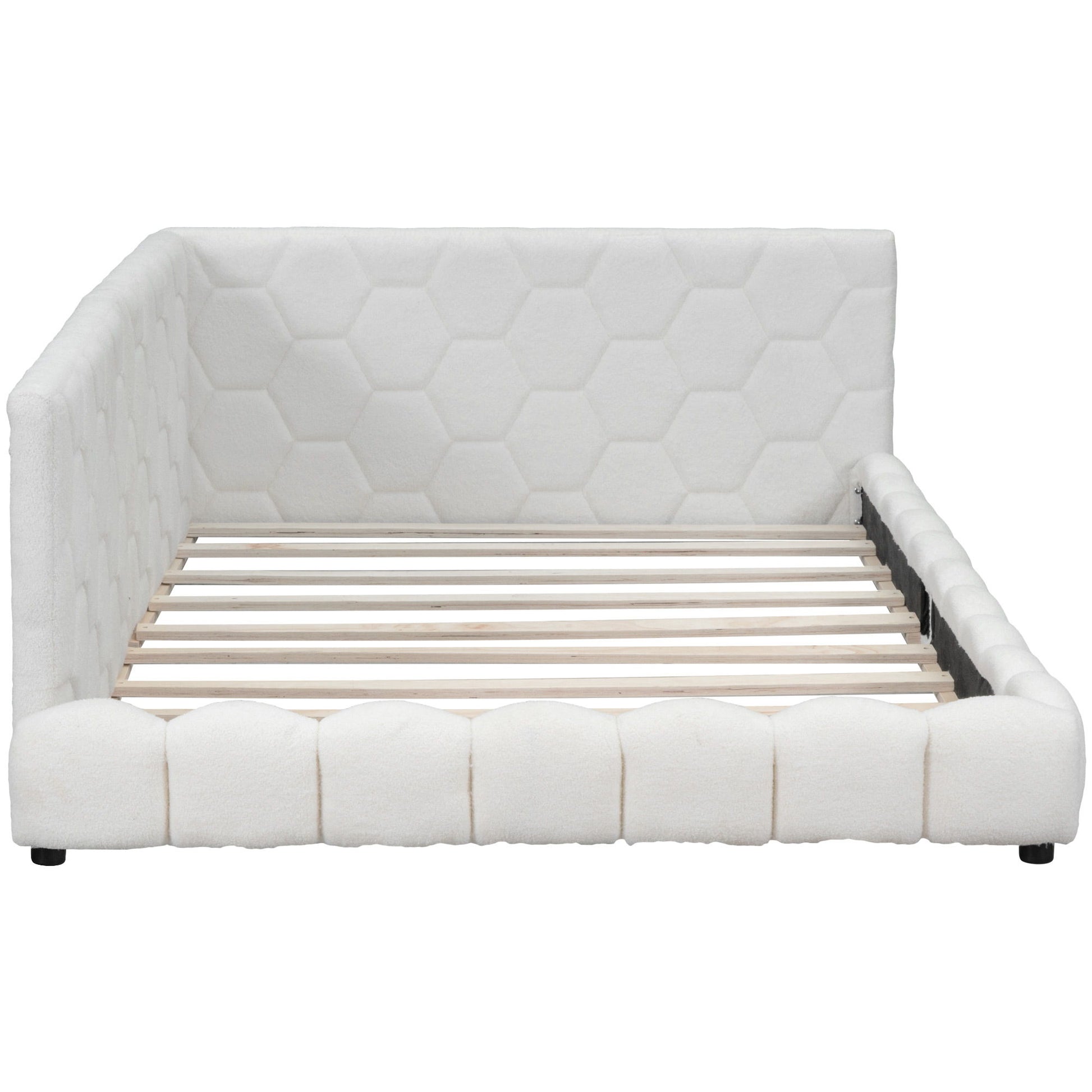 - Comfortable Design: Low-profile platform bed with a soft white teddy finish complements various interior styles.