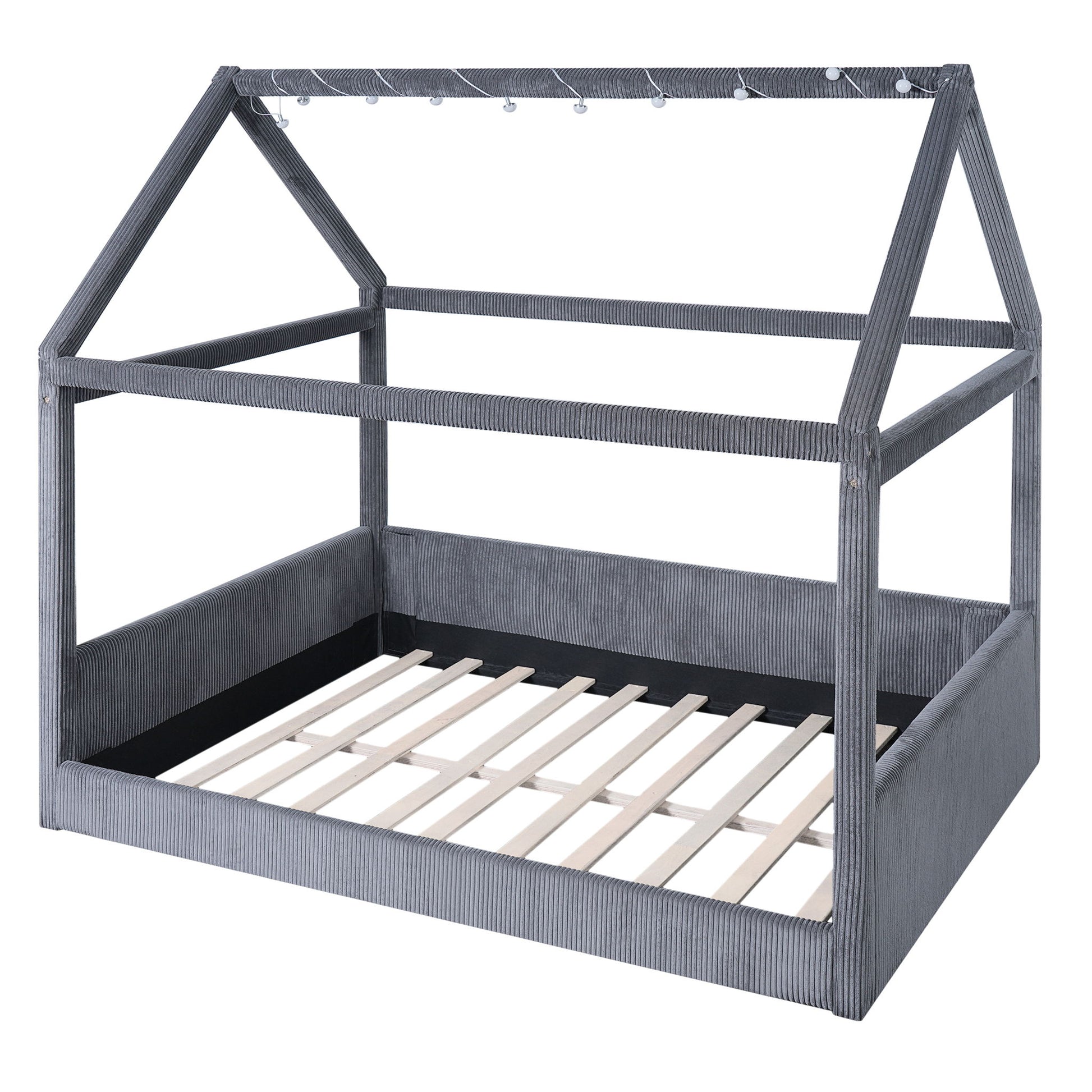 Full Size Upholstered House Style Daybed With LED Light Strips - Gray