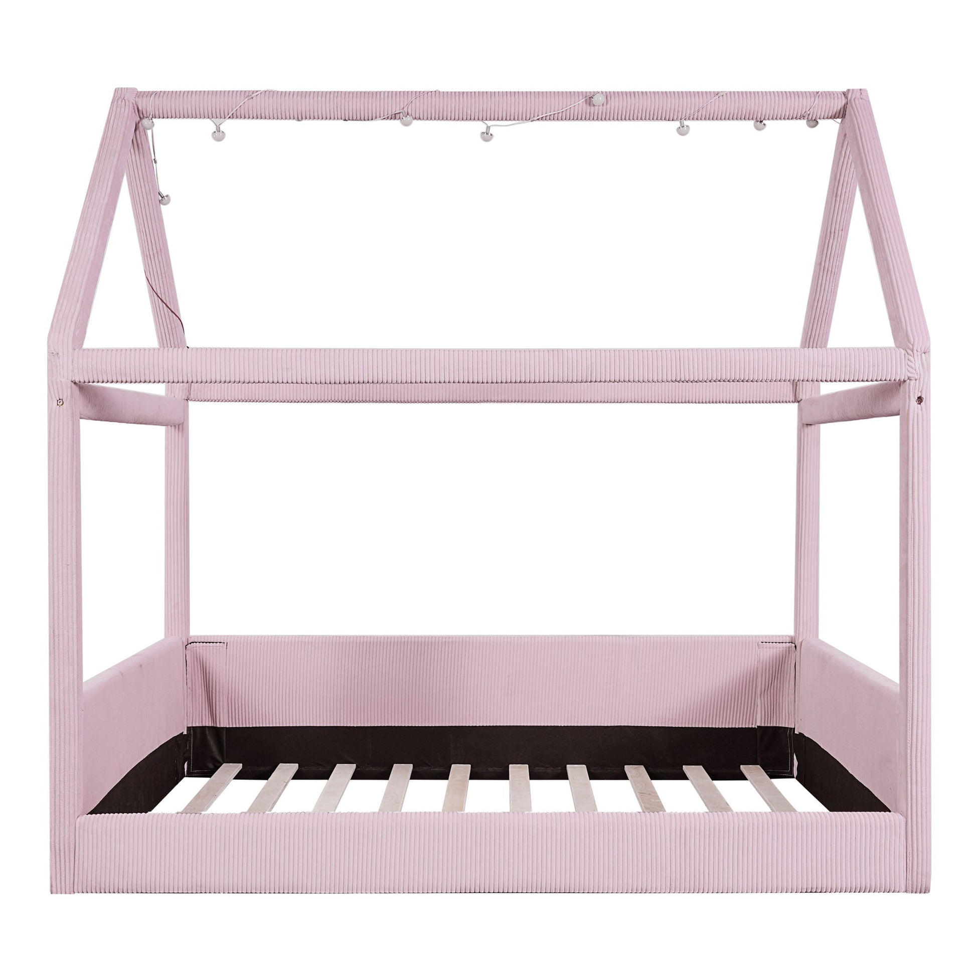 Full Size Upholstered House Style Daybed With LED Light Strips - Pink