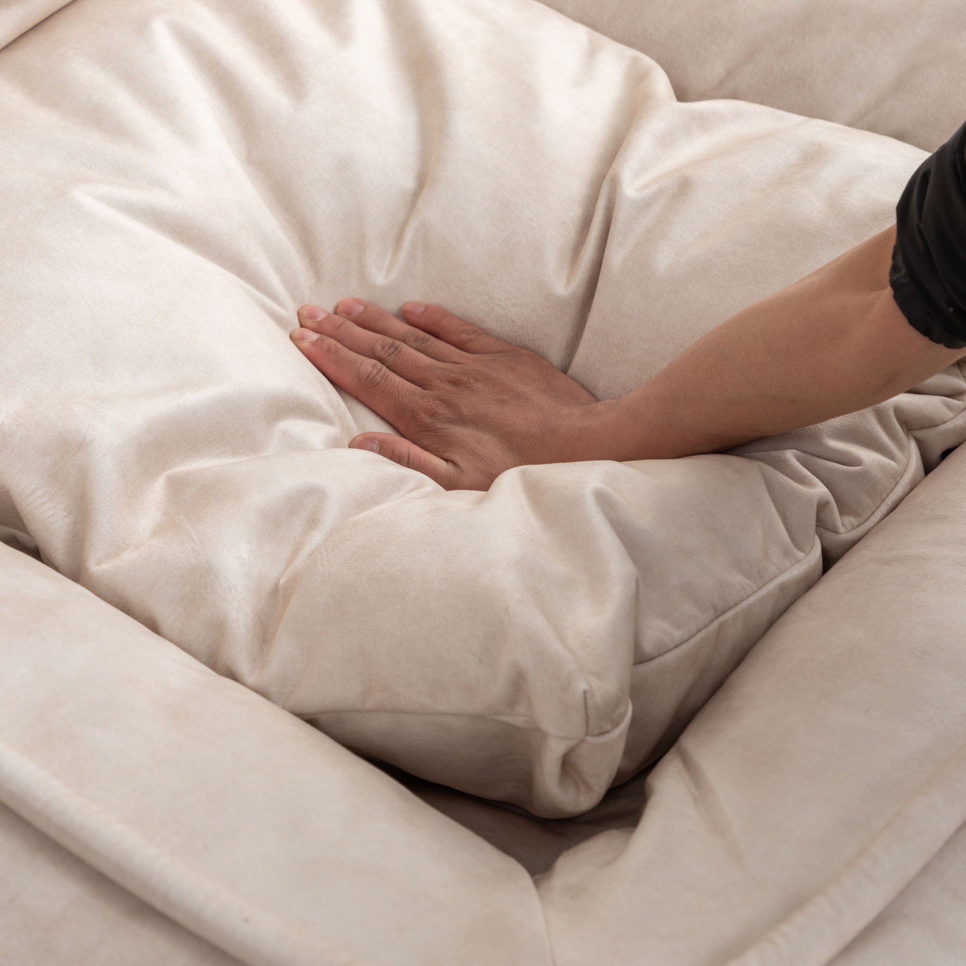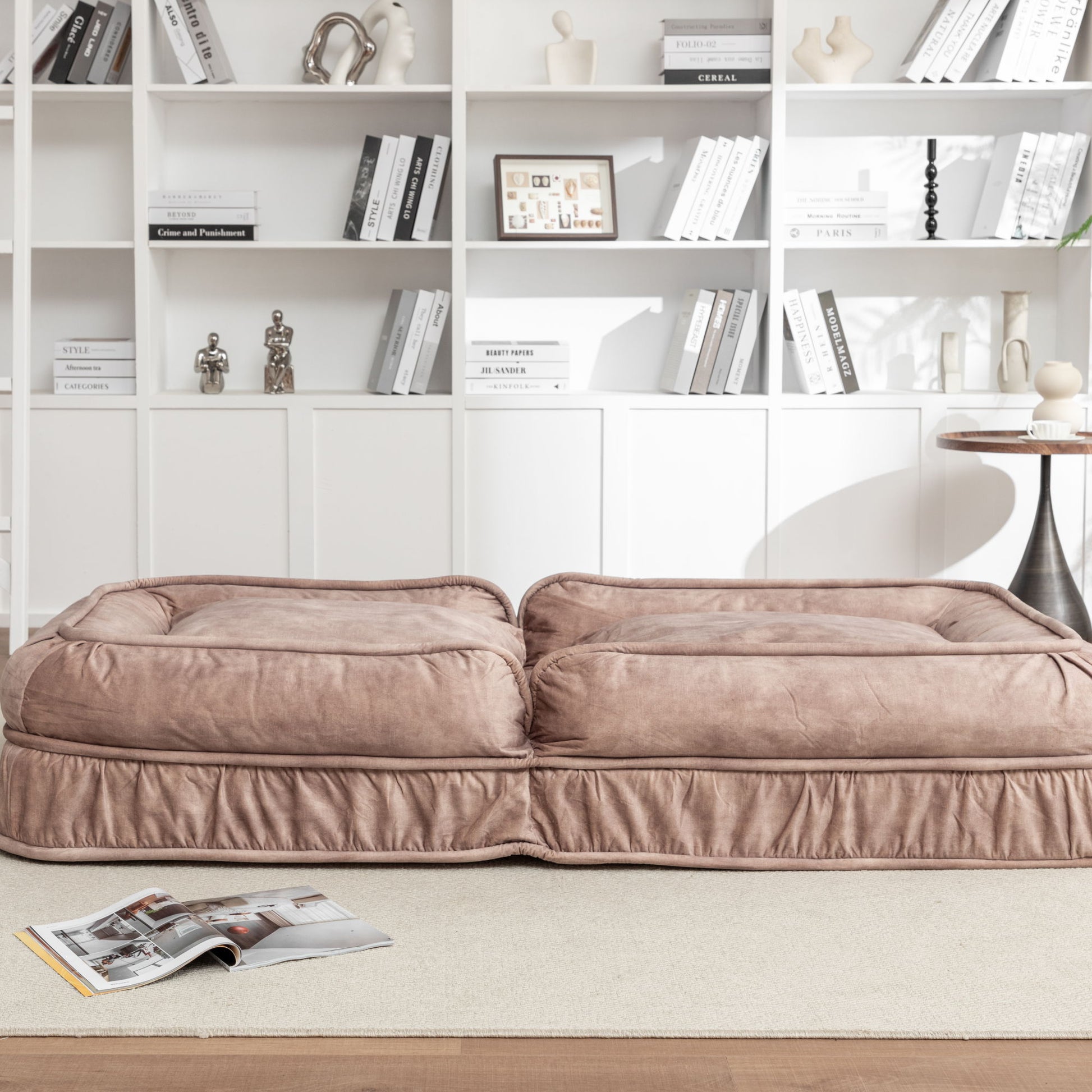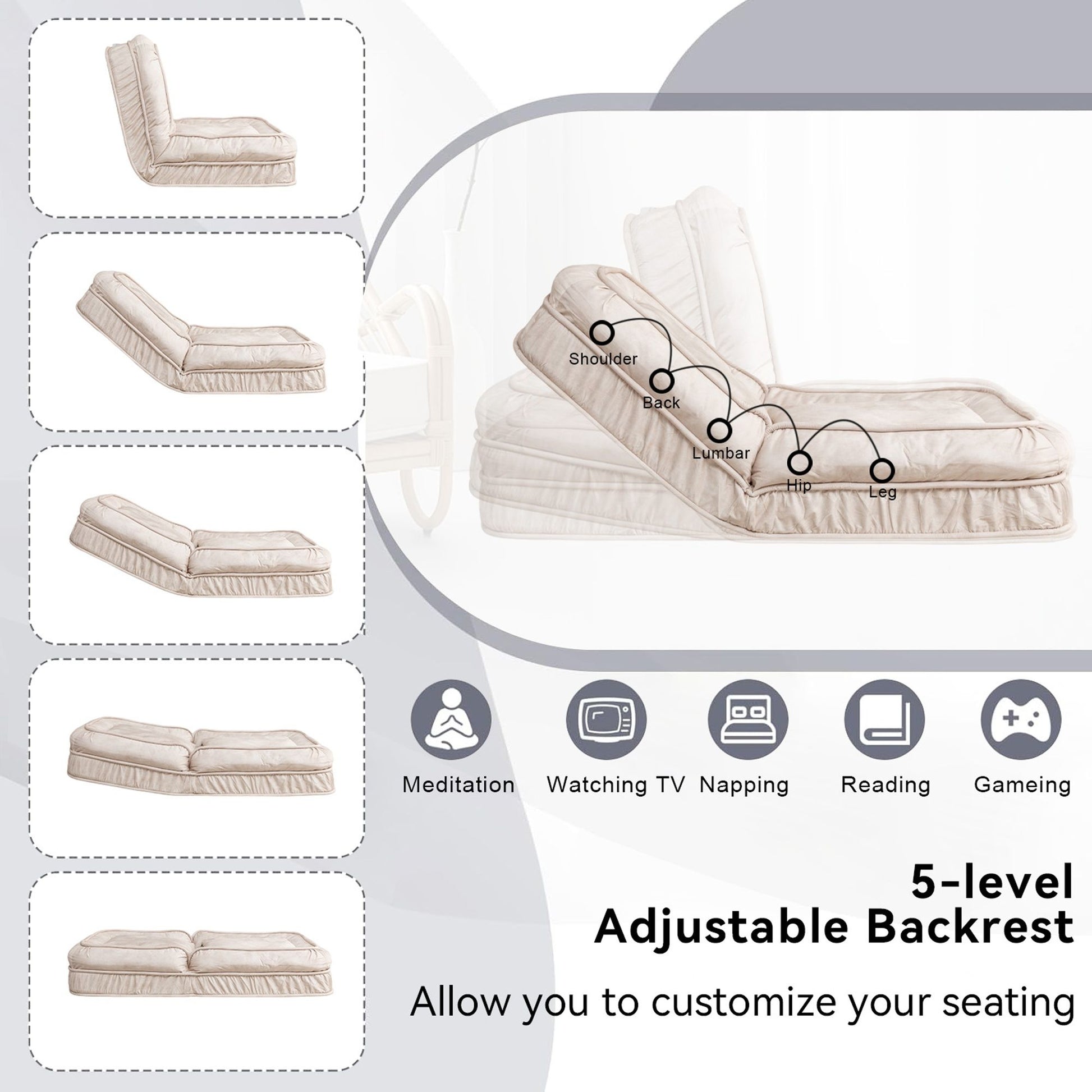 Upholstered Human Dog Bed And Pets Bean Bag Floor Sofa With Massage Pillow, 5 Adjustable Positions & 2 Soft Pillows, Velvet With Foam And Iron Plastic Frame - Beige